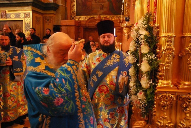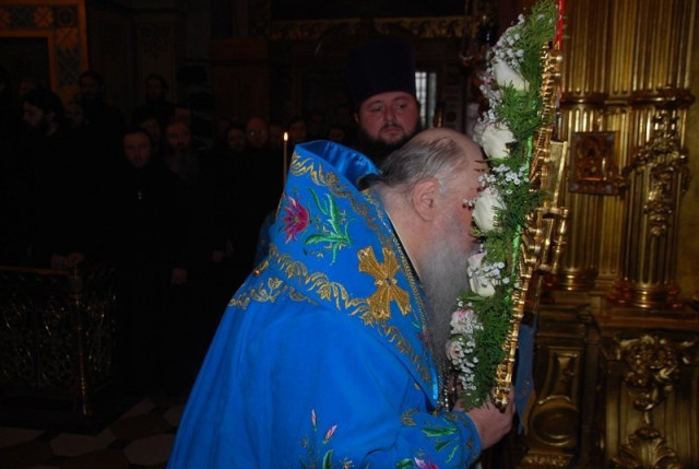 Святкову Всенічну, яка звершувалась у Свято-Успенському соборі Лаври, очолив митрополит Ніфонт, якому співслужив сонм архіпастирів.