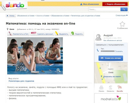 Про це повідомляють співробітники сайту безкоштовних оголошень Slando, на якому почали з'являтися пропозиції незвичайної допомоги недбайливим студентам.