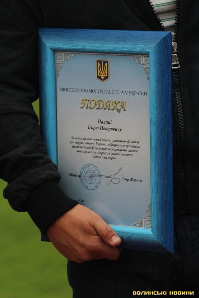 Міністр молоді і спорту України Ігор Жданов вручив подяку Ігорю Палиці. Своєю чергою, він висловив сподівання, що таку високу соціальну активність проявлятимуть і в інших регіонах держави.