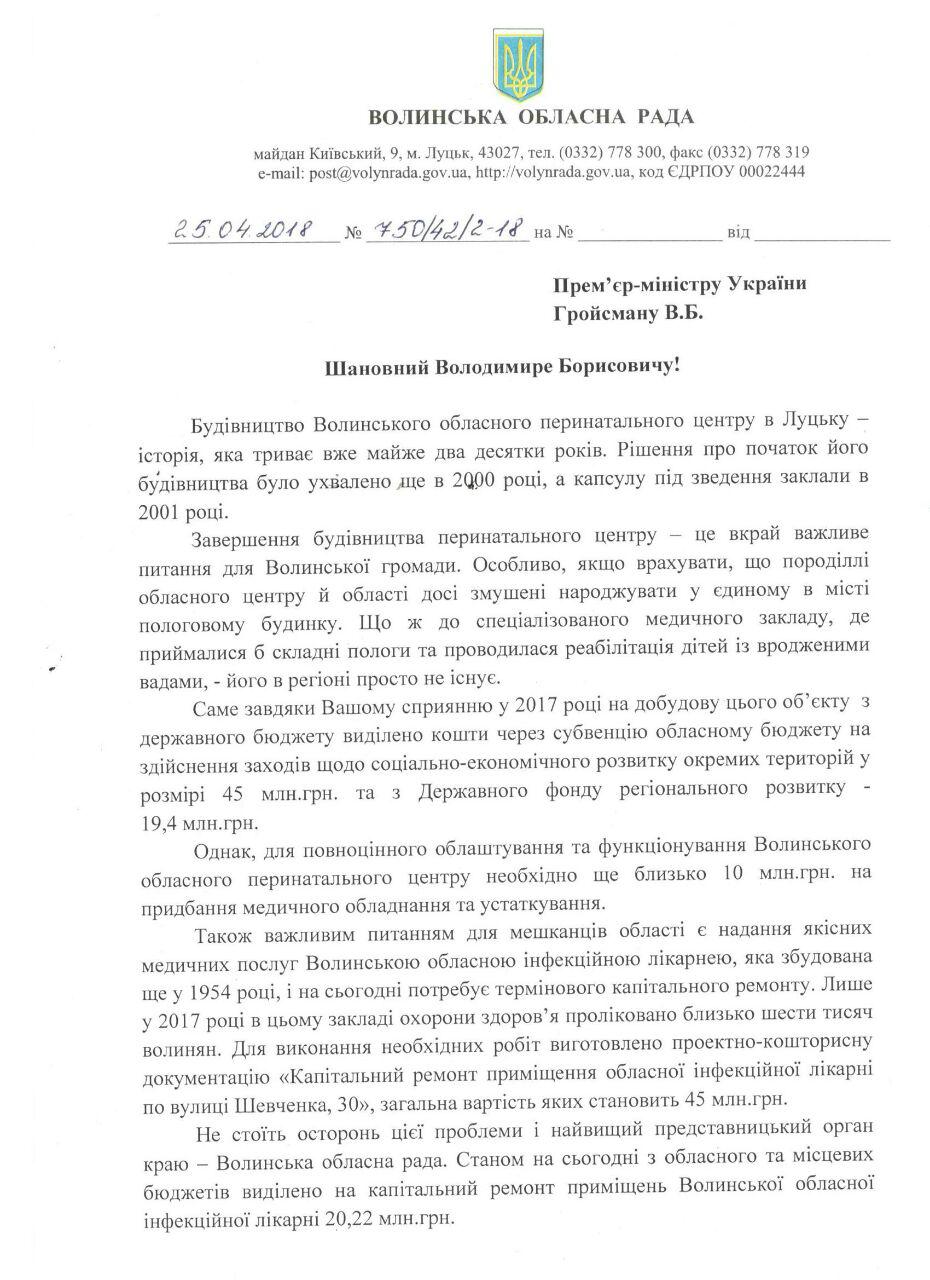 Як зазначається, будівництво Волинського обласного перинатального центру в Луцьку триває майже 20 років, а такий заклад – вкрай важливий для волинян, адже спеціалізованого медичного закладу, де приймалися б складні пологи та проводилася реабілітація дітей із вродженими вадами в регіоні просто не існує.