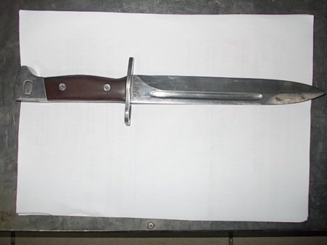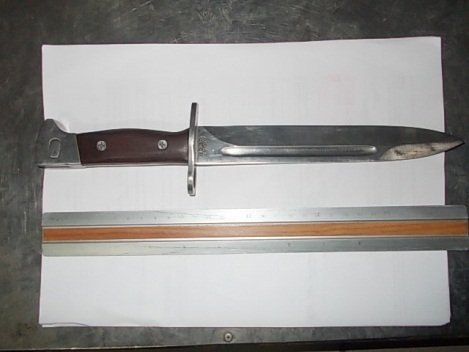 Загалом довжина знахідки становить 30 сантиметрів. Леза, на якому напис «АК-47 СССР», ‒ 19. Холодну зброю «внюхав» службовий пес Денні.