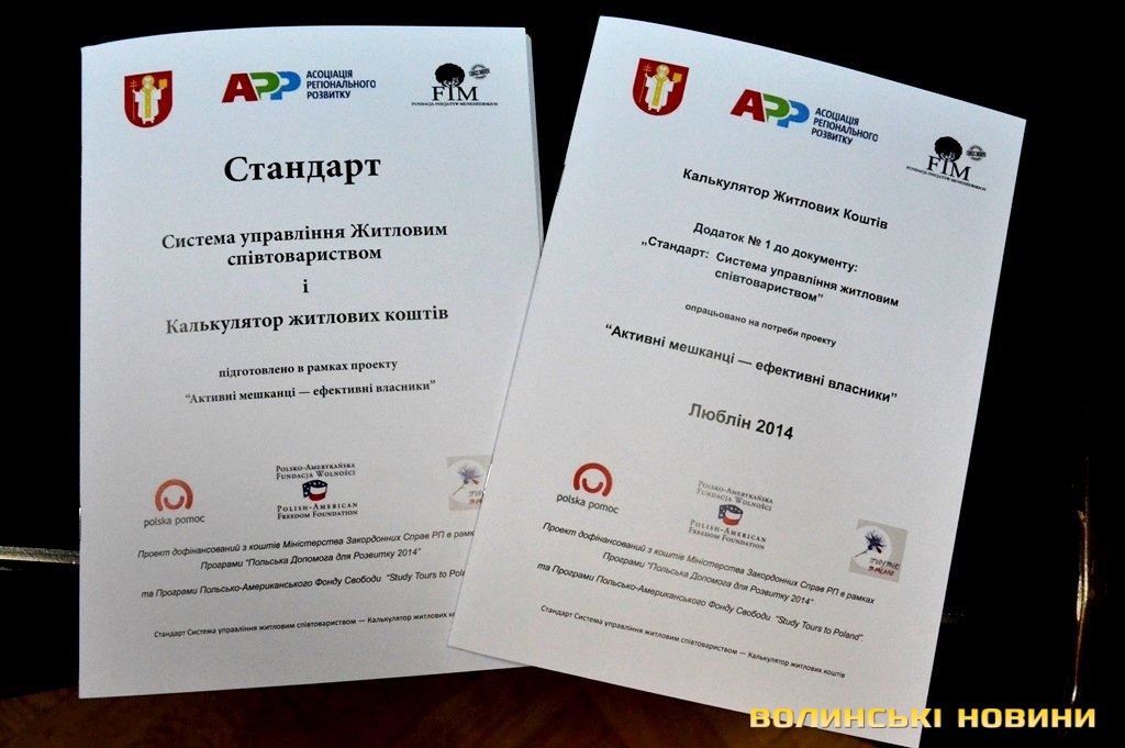 У рамках проекту, керівники луцьких ОСББ мали можливість поїхати в Польщу й запозичити їхній управлінський досвід. Окрім того, на завершення проекту, експерти підготували два посібники: «Стандарт: Система управління житловим співтовариством» і «Калькулятор житлових коштів», які допоможуть ефективніше використовувати гроші.Як розповіли учасники зустрічі, продовж проекту виникла ще одна цікава ідея, яка знайшла підтримку й реалізацію: 25 осіб пройшли навчання в ЛНТУ й отримали посвідчення кваліфікованих управлінців.