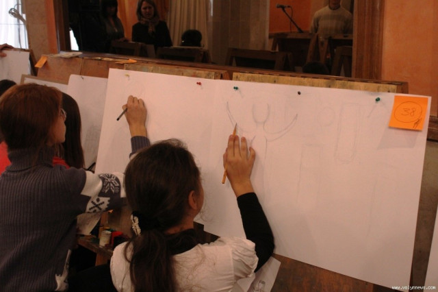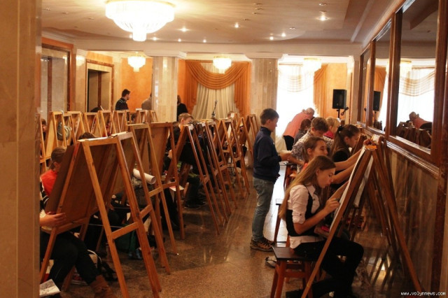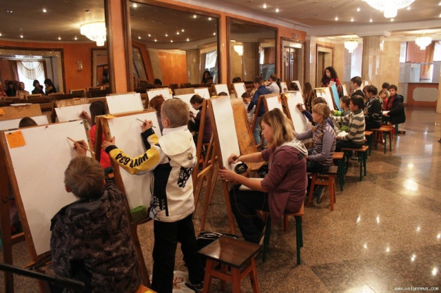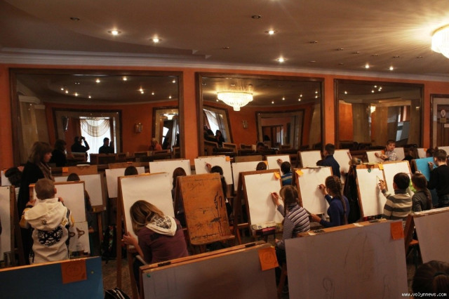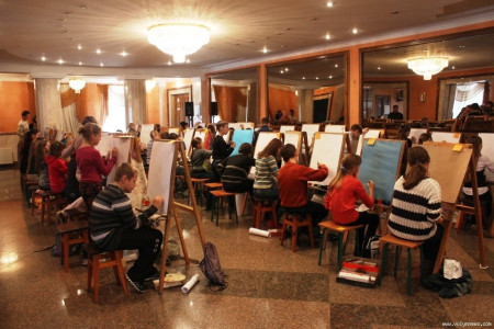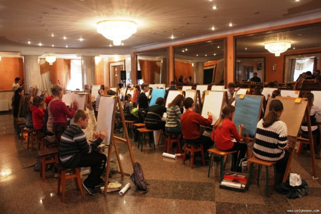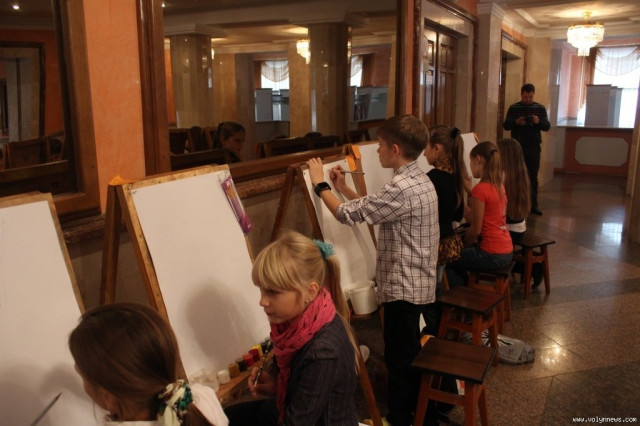Захід мав відбутися на Театральному майдані, однак через погодні умови організатори запропонували юним художникам творити у фойє Палацу культури. Дехто з митців, не злякавшись прохолодної вітряної погоди, вирішив малювати просто неба.