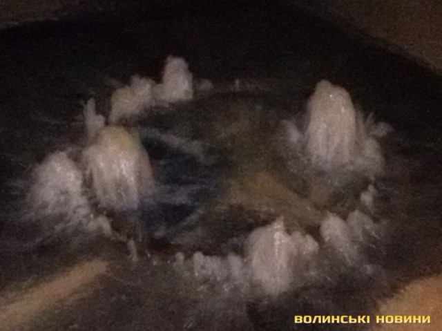 Аварійна ситуація, яка трапилася в одному з каналізаційних колекторів по проспекту Грушевського в Луцьку, мала продовження. Так, за станом на першу годину ночі вода продовжувала бити фонтаном з-під одного з каналізаційних люків навпроти ресторану «Грабінскі».