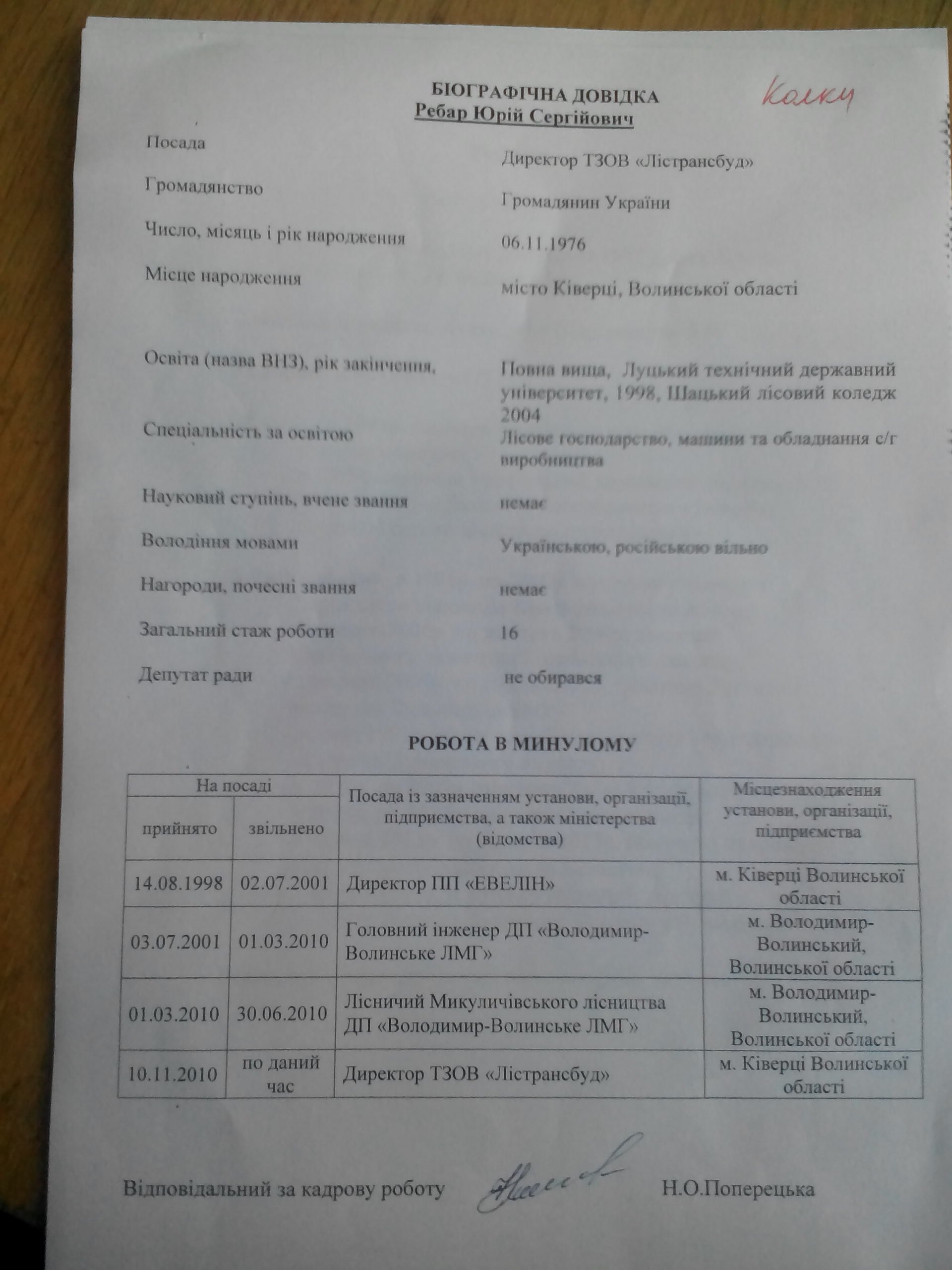 Люстраційний комітет до роботи!!! Перевірка на вашу пронизливість та безкомпромістність в боротьбі за правду! А ще Ребар Юрій виконував замовлення Даніліна (Луцького міського прокуратора) на виготовлення дерев"яних будинків для розважального комплексу біля МАКСИМУСУ - "Щас спою" (з краденого ("місцями") лісу :) . Прошу розвінчати мої "здогадки" документально :)