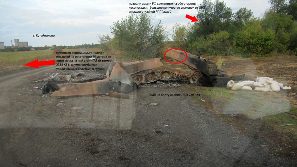 Величезну і неоціненну роботу по встановленню обставин бою провели працівники Національного військово-історичного музею Міноборони України, які у вересні 2014-го побували на місці бою, і провели точну прив'язку до місцевості - саме військові історики виявили і сфотографували залишки БМД-2 №334. Це точка на трасі Осикове-Кутейникове поблизу позначки 182,0.