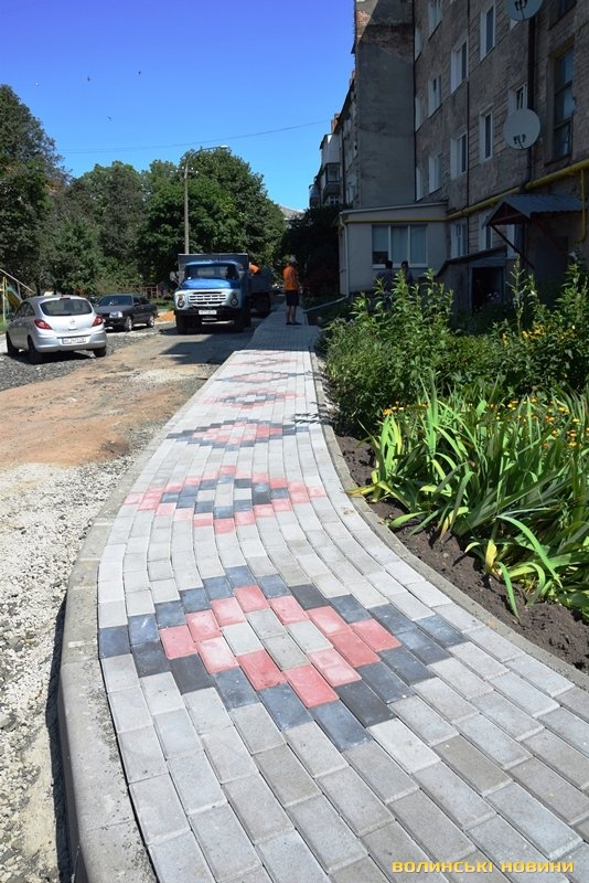 «Ми вже приступили до ремонту тих районів Луцька, які в минулому люди називали забутими Богом, – зауважив Григорій Недопад. – Ремонт прибудинкових територій тут вівся лише при будівництві цих будинків, і з того часу про ці двори не згадували. Ми виправляємо цю ситуацію і сьогодні вже бачимо результат на частині території. Досить швидко викладена бруківка, люди задоволені, в пішохідній зоні від мосту встановлена і тактильна плитка, щоб попередити про перехід на проїжджу частину. Знову ж надаємо перевагу бруківці у ремонті цього двору, щоб зберегти доступ до підземних мереж і при цьому не зашкодити зовнішньому вигляду двору. Окрім викладання бруківки, тут також передбачено встановлення сучасного освітлення, дитячого майданчика, сміттєвих зон, розширення парковки й ряд робіт, які передбачені ремонтом «під ключ».