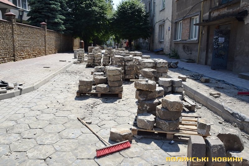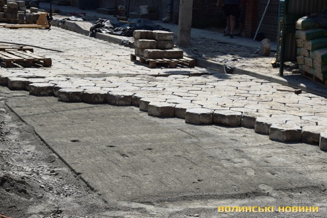 На історичній вулиці Пушкіна у Луцьку триває капітальний ремонт зі збереженням старовинної плитки Трилінського. Вага однієї такої плитки – близько 40 кг. Виконавці робіт оббивають від бетону кожну плитку, а потім викладають її з максимальним ущільненням. На тротуарах викладається сучасна бруківка, у той час як «Трилінка» вкриватиме проїжджу частину. При цьому вулиця буде комфортною і для пішоходів, і для руху транспорту.