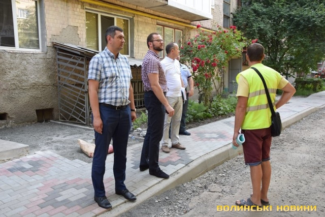 Перевірили якість виконання ремонтів перший заступник Луцького міського голови Григорій Недопад, радник Луцького міського голови Ігор Поліщук, начальник відділу Департаменту ЖКГ Богдан Козел.