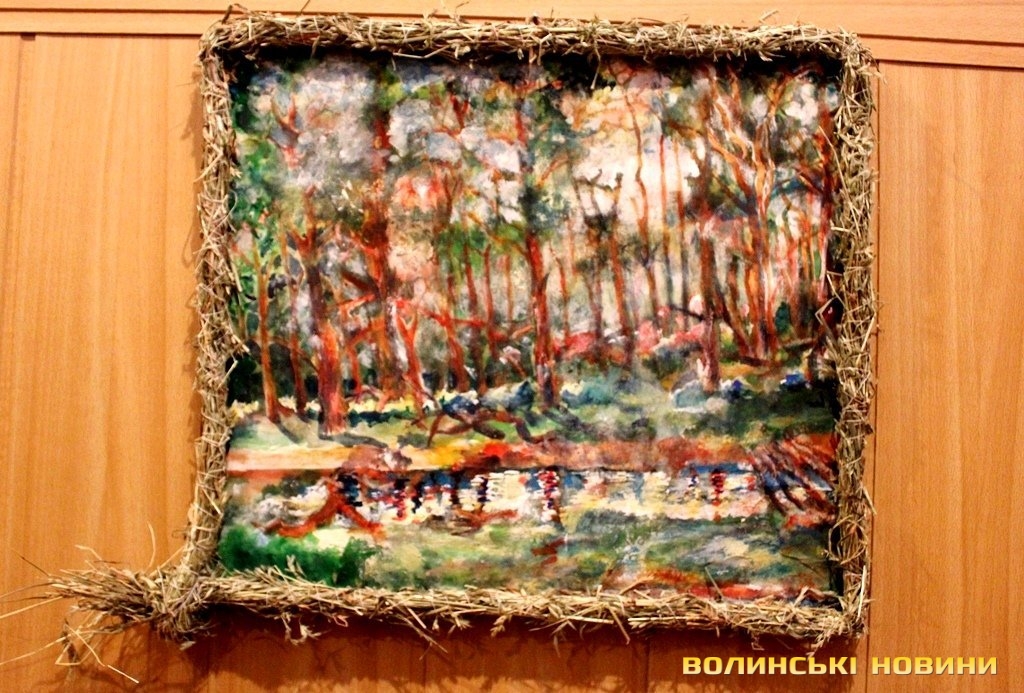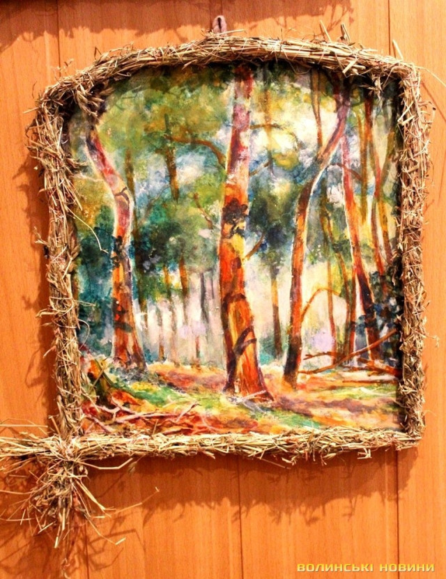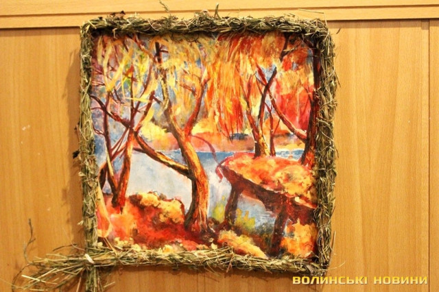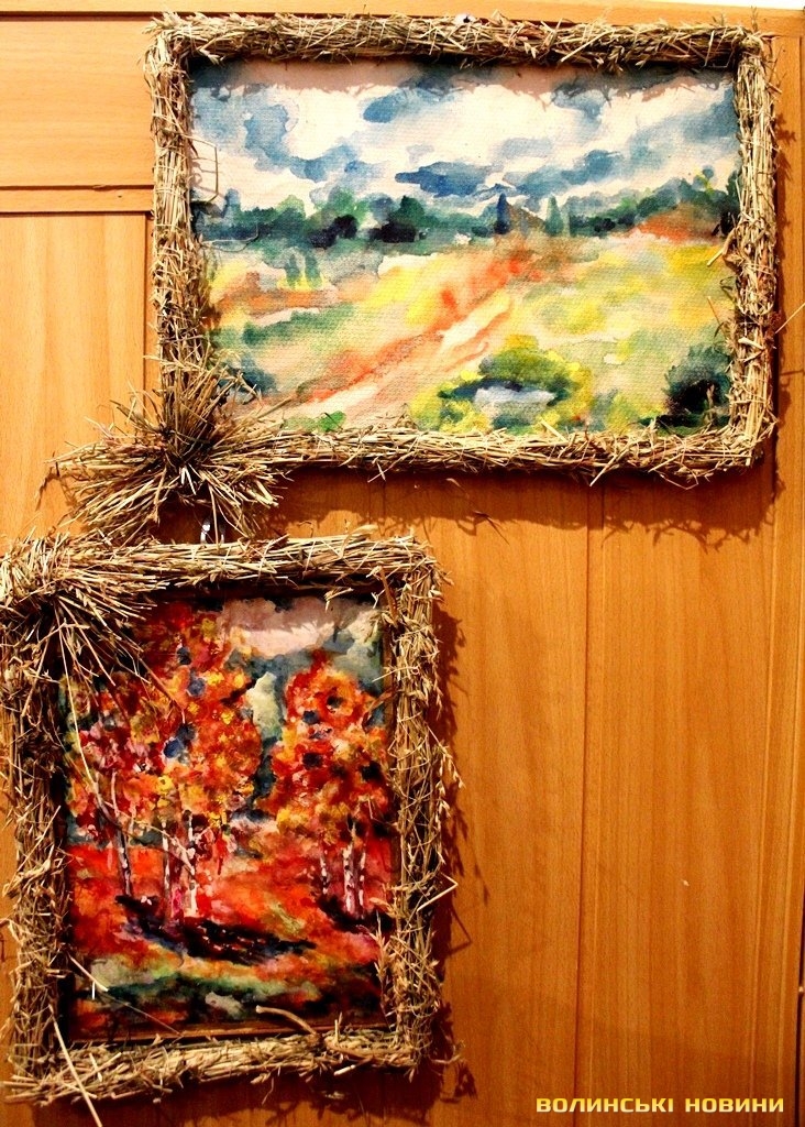Варто зауважити, що під час організації виставки виникли проблеми з тим, що картини помістити в рамки, адже в автора не було грошей на них. Аби вирішити цю ситуацію, працівники терцентру зробили обрамлення із сіна та соломи.