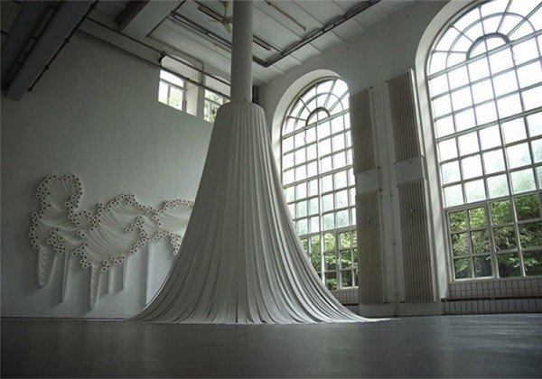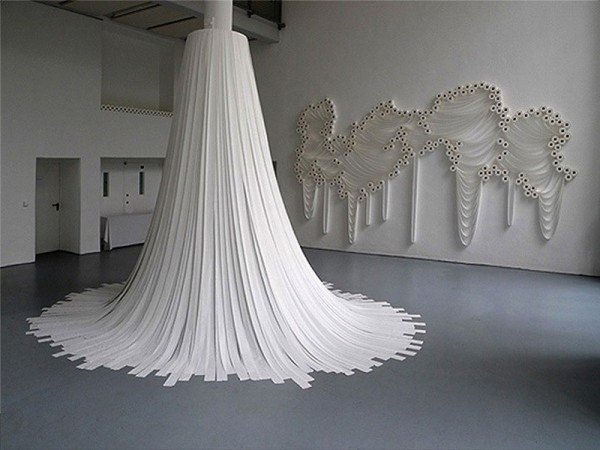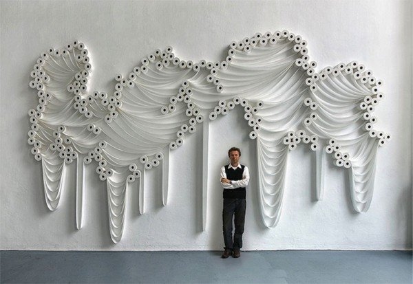 Його скульптури під назвою «Трансслої» складаються з сотень рулонів туалетного паперу, які він викладає в абстрактні твори мистецтва на білому фоні.