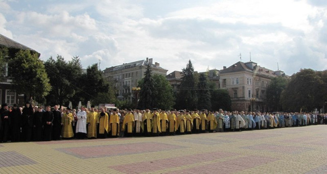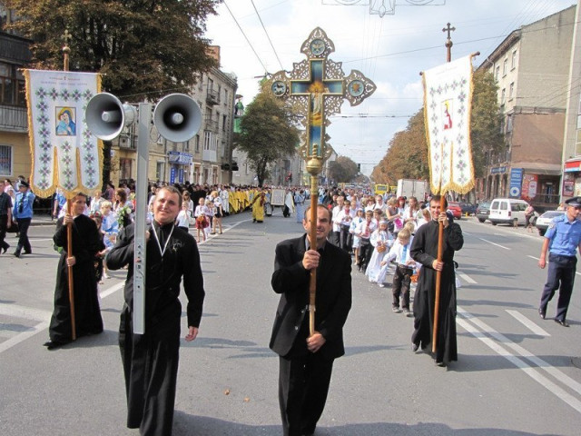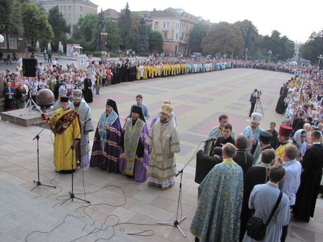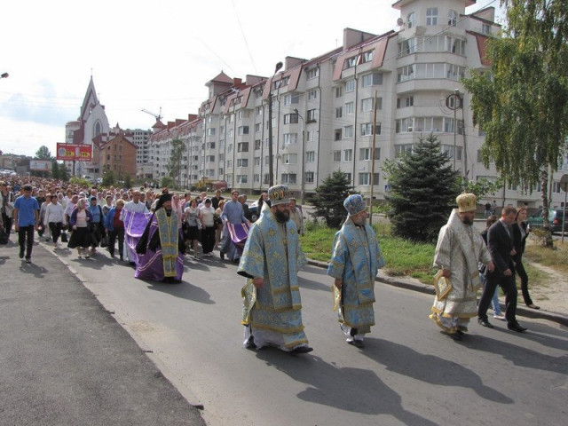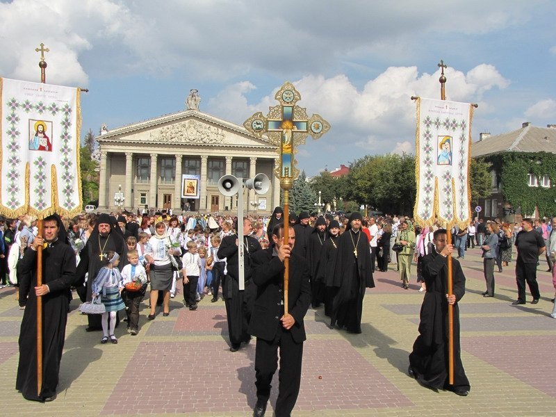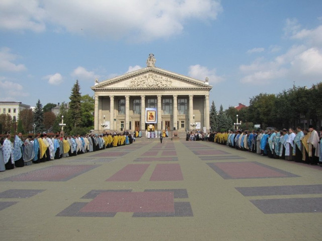 Відбулася велика хресна хода і молебені до Богородиці: на майдані перед обласним драмтеатром і біля Свято-Троїцького духовного центру.