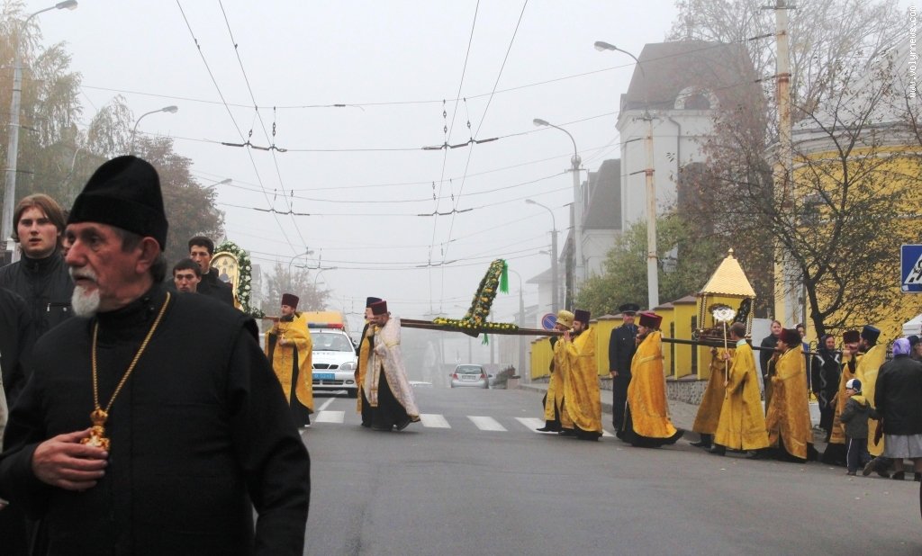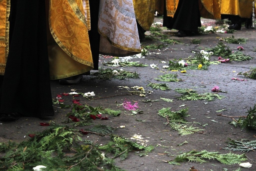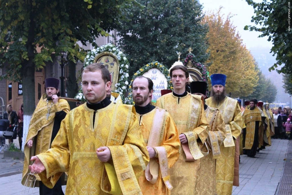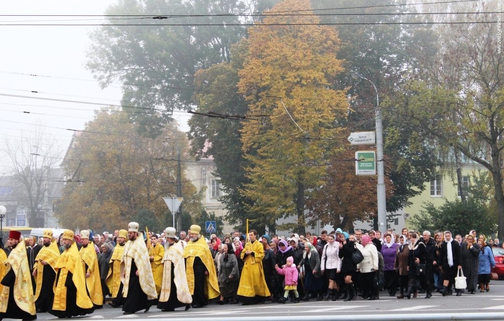 У Луцьку священики Волинської єпархії УПЦ та православні віряни пройшли хресною ходою від Свято-Покровської церкви до тимчасового храму Всіх Святих землі Волинської.