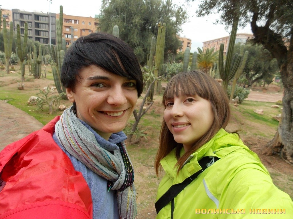 13 січня. МарракешПроводимо півдня у безкоштовному парку Жардін Ель Харті. Тут мандаринові та оливкові дерева, кактуси і агави – краса. Пообіді починається дощ, і Мустафа знову забирає нас додому машиною. Взагалі, Мустафа до нас дуже добрий, часом аж надто. Любить обійматися і цілувати в щічку. Може, він просто не такий, як холодні європейці?