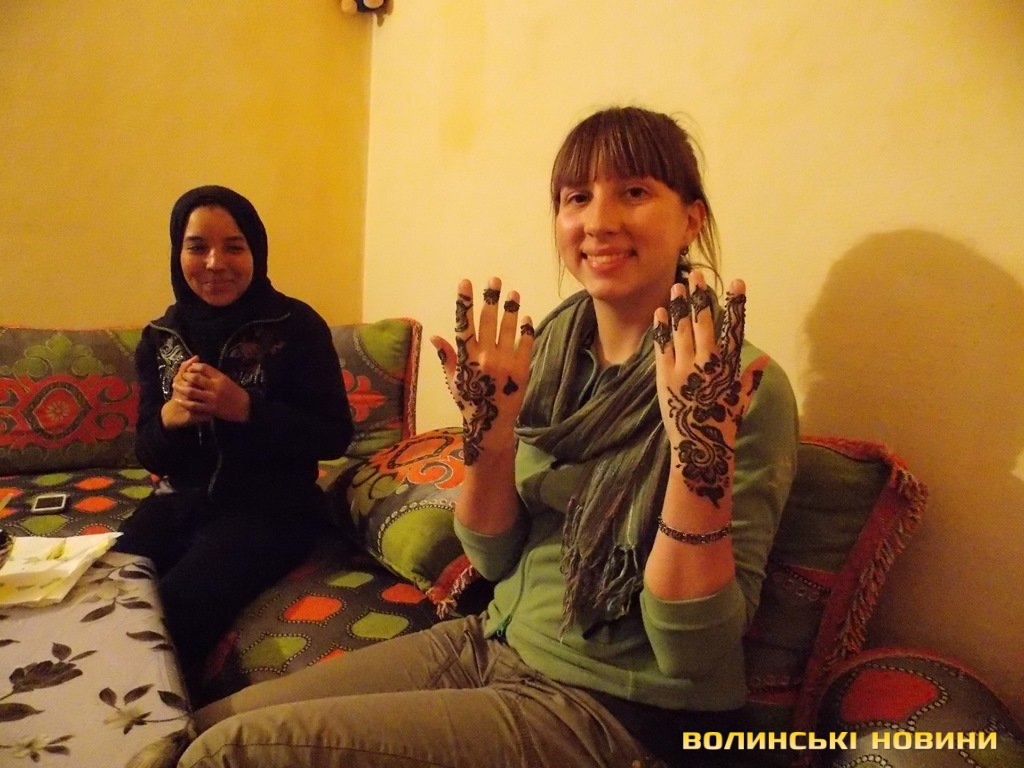 14 січня. Марракеш – водоспад Узуд – Бені-МелальМустафа вивозить нас на дорогу в бік водоспаду Узуд. За кілька хвилин застоплюємо молоду вчительку, потім самотнього чоловіка, з ними проїжджаємо півдороги. Потім нам стає автобус, водій на наше “Nomoney” відповідає “Noproblem”, їдемо ще кількадесят кілометрів автобусом. Далі застоплюємо сумнівних хлопців з фургоном, ті завозять нас на водоспад і супроводжують, поки ми ним милуємося і годуємо мавпочок. Пригощають мандаринами і намагаються нагодувати шашликом – марно. Вже пізно ввечері вивозять нас на перехрестя, звідки лишається 20 км до міста Бені-Мелаль, де ми маємо знайти недорогий готель, бо каучсерфінгу там нема. Але після чарівного словосполучення «ме гендіш» («у нас нема грошей»), сказаного водієві нічного автобуса, ми дивом опиняємося в гостях у його друга Мухамеда і його сім’ї. З них ніхто не говорить англійською, але вони дуже милі, і видно, що їм приємно мати в гостях двох європейок. Вони нас годують, поять і навіть розмальовують мені руки хною і вкладають спати під теплими ковдрами.