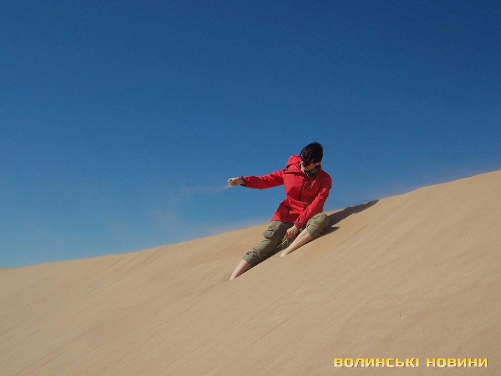 Купуємо солодощі в місцевій кондитерці і йдемо босоніж уздовж пляжу на південь, де на обрії видніються дюни. Серед них знаходимо місцину, захищену від вітру і прогріту сонечком. Почуваємося, як у справжній пустелі. Але пісок потім витрушуємо навіть із білизни. Ввечері докупили ще солодощів, зробили чайник чаю і пішли на дах дивитися на океан і писати мемуари.