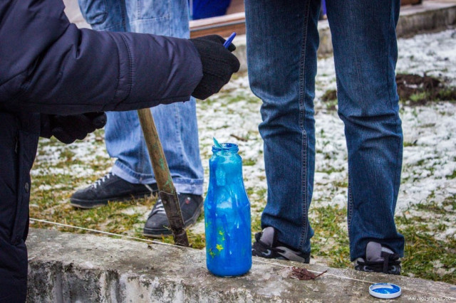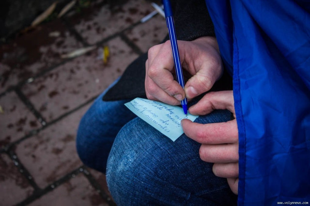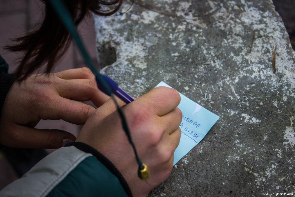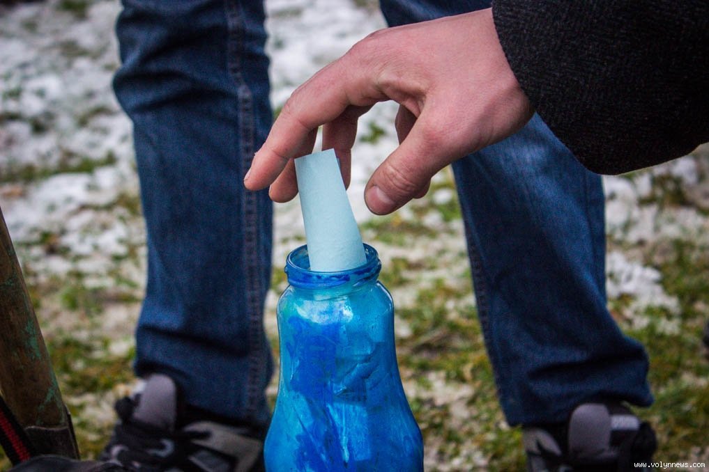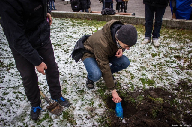 Чимало охочих приєдналось до закладання своєрідної «капсули часу». Щоправда, це, напевне, найнедовговічніша. Адже пляшку, в яку прохожі клали листівки з власними прогнозами розвитку подій, відкопають уже в п’ятницю, 29 листопада.