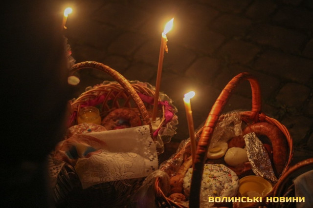Вже о третій годині ночі біля храму – ніде яблуку впасти. Ті, хто прийшов пізніше, стають у живий коридор, який веде від храму аж до ЗОШ №24.Дорослі і діти, бабусі і дідусі й навіть немовлята – тут можна зустріти людей різного віку. Кожен з них приніс кошик з традиційним «набором». Для освячення, за традицією, беруть не лише, власне, паску та крашанки. У кошиках прихожан і ковбаска, м’ясо, масло, сирна бабка тощо.