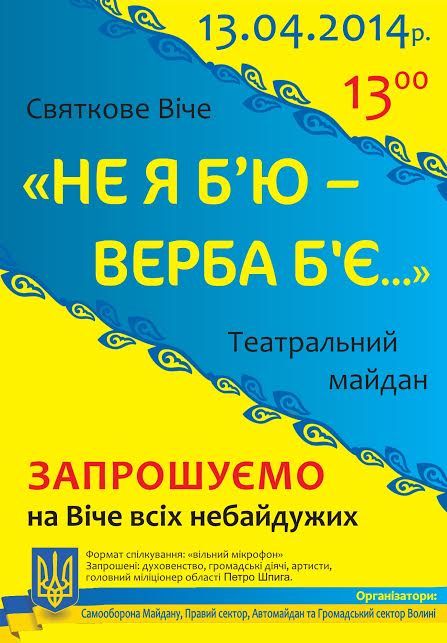 Організатори віча: Волинська Самооборона Майдану, Правий сектор Волині, Автомайдан України та Громадський сектор Волині.