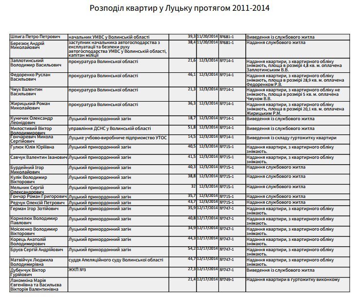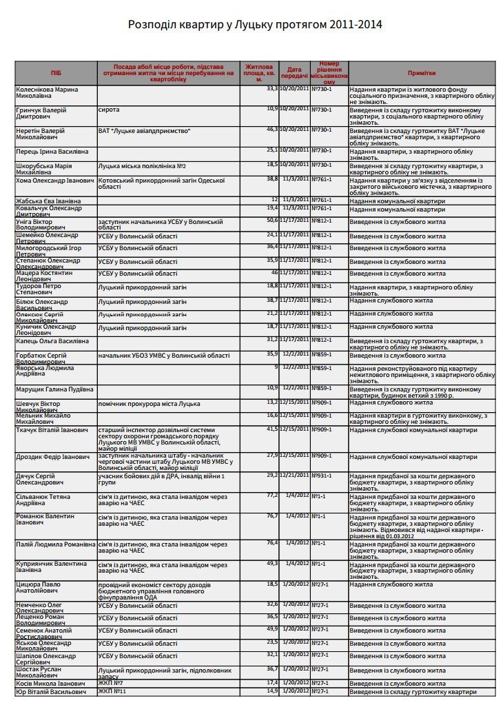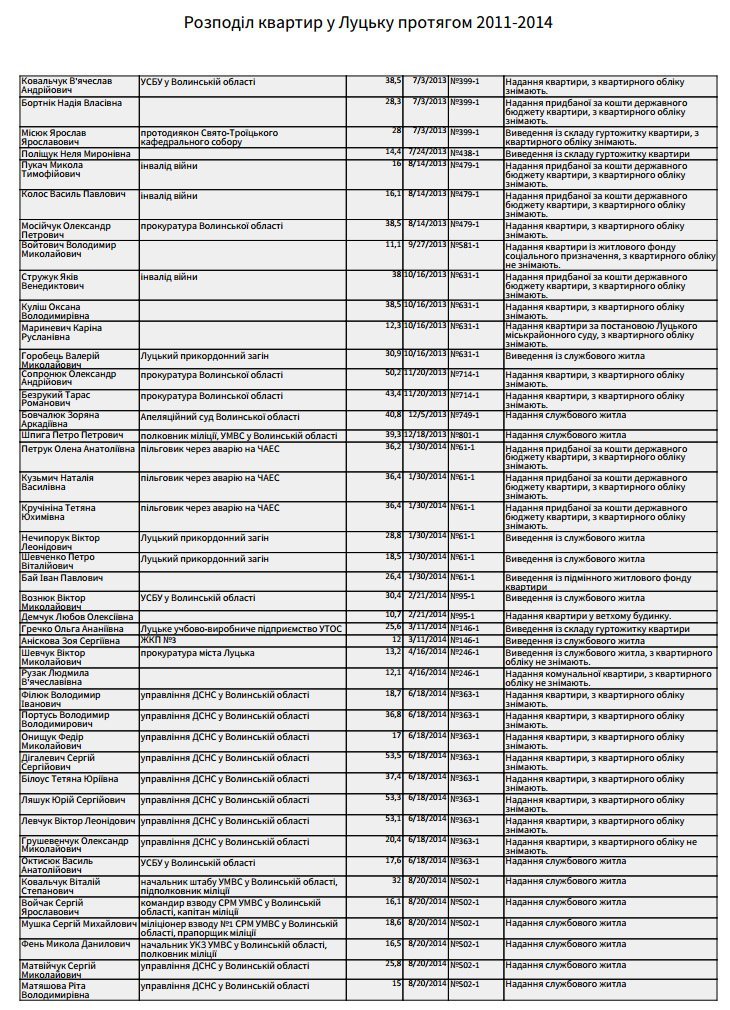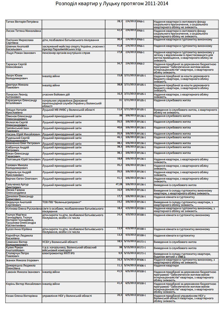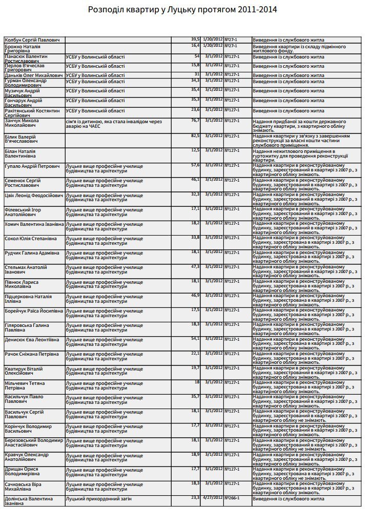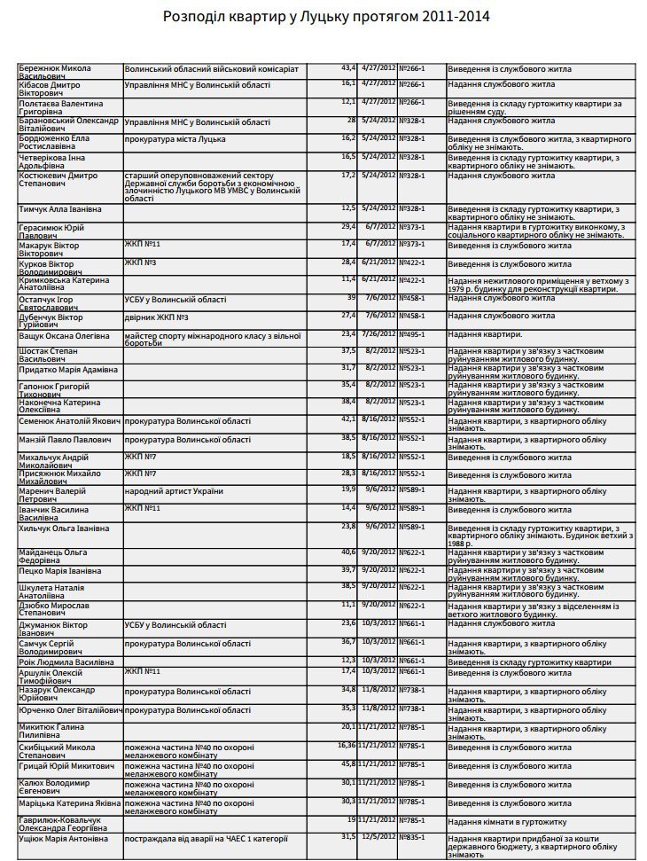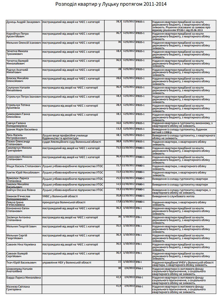 Повний спискок осіб, яких забезпечили житлом у жовтні 2011-го – грудні 2014-го років: