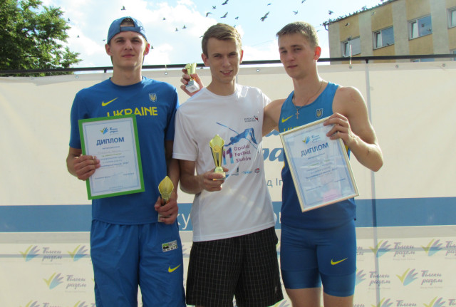 Переміг у ній Артур Колесник із Миколаєва. Йому підкорилася планка на висоті 2.16 метра, і цей результат став новим рекордом змагань, перевищивши торішній на сантиметр. До останнього інтригу в боротьбі за п’єдестал допомагали зберігати Артуру місцевий стрибун Вадим Кравчук, який, до слова, разом із кількома іншими спортсменами ідейно надихають змагання, а також Сергій Слісенко зі Львова та Андрій Ільницький із Козятина. Вадим, який щойно приїхав із міжнародних змагань у Чехії, тримався до останнього, брав 2.09 та 2.13 з перших спроб, але на 2.16 зупинився.