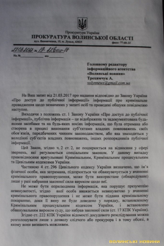 На інформаційний запит Інформаційного агентства Волинські Новини у прокуратурі не змогли відповісти, яким установам, організаціям та підприємствам вищезгадані бізнесмени постачали неякісні продукти та, на яку суму продали підробленої продукції.