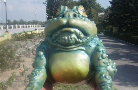 Знакомая жаба!!! Стоит этот памятник на набережной в городе Голая Пристань.