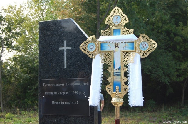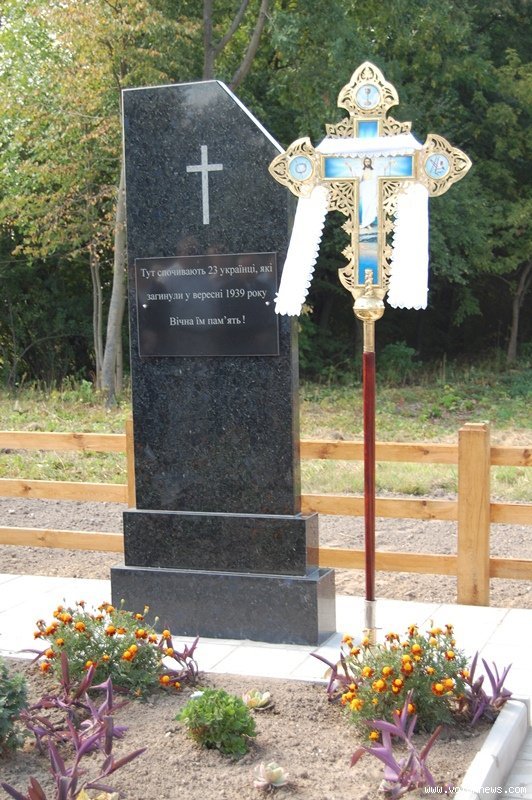 «Тут спочивають 23 українці, які загинули у вересні 1939 року. Вічна їм пам’ять!», – такий напис викарбуваний на пам’ятнику.