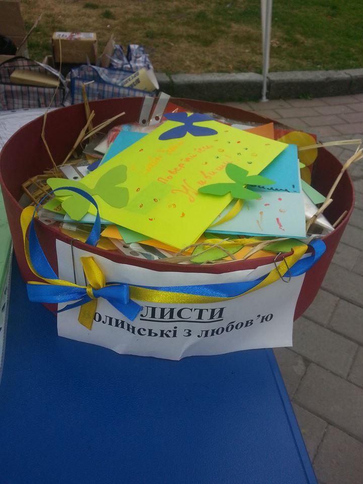 Крім книжкового ярмарку, на Театральній площі писали солдатам листи. Зібрали 50 листів для солдатів, серед яких дитячі малюнки та слова підтримки від жінок.