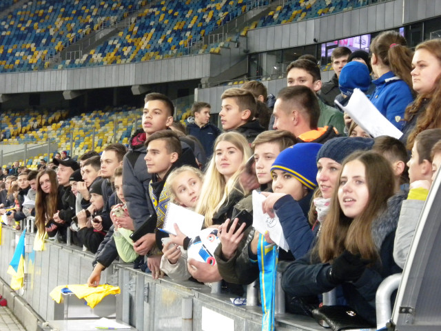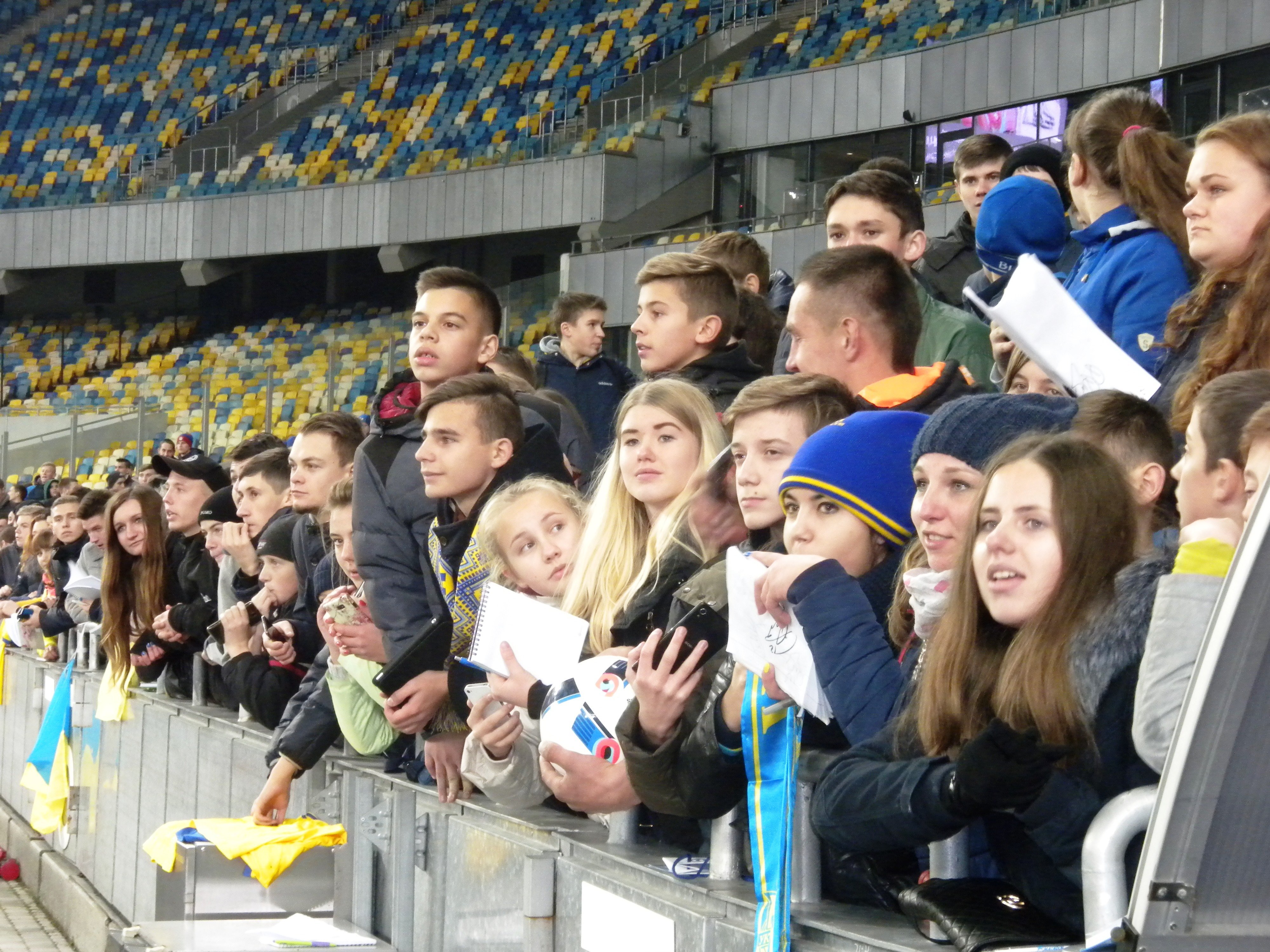 Після пресухи – відкрите тренування збірної, на яке міг прийти будь-хто охочий. Гравці вибігали-виходили з тунелю під схвальні вигуки кількох сотень киян. Уболівальники заповнили центральні нижні сектори й терпеливо чекали на автограф чи селфі з улюбленцями. Найбільше працювати довелося Коноплянці. На початку тренування визволяти його від надміру уваги вболівальниць узявся сам Шевченко, а в кінці найбільший веселун збірної не поспішав сховатися від листопадового холоду в роздягальні й «запалював» з людьми, раз по раз пробігаючи вздовж сектора. Вряди-годи хтось із гравців запускав «свічку» на трибуни, і м’яч діставався щасливчикам у подарунок. Половина викликаних у збірну футболістів грають у європах і знають усі тонкощі спілкування із вболівальниками. Окрема овація дісталася Шеві – його люблять і підтримують, аванс довіри суспільства до нашої легенди ще не скоро вичерпається. Це на прес-конференціях він уже Андрій Миколайович, уболівальники ж звично кличуть його Шевою.
