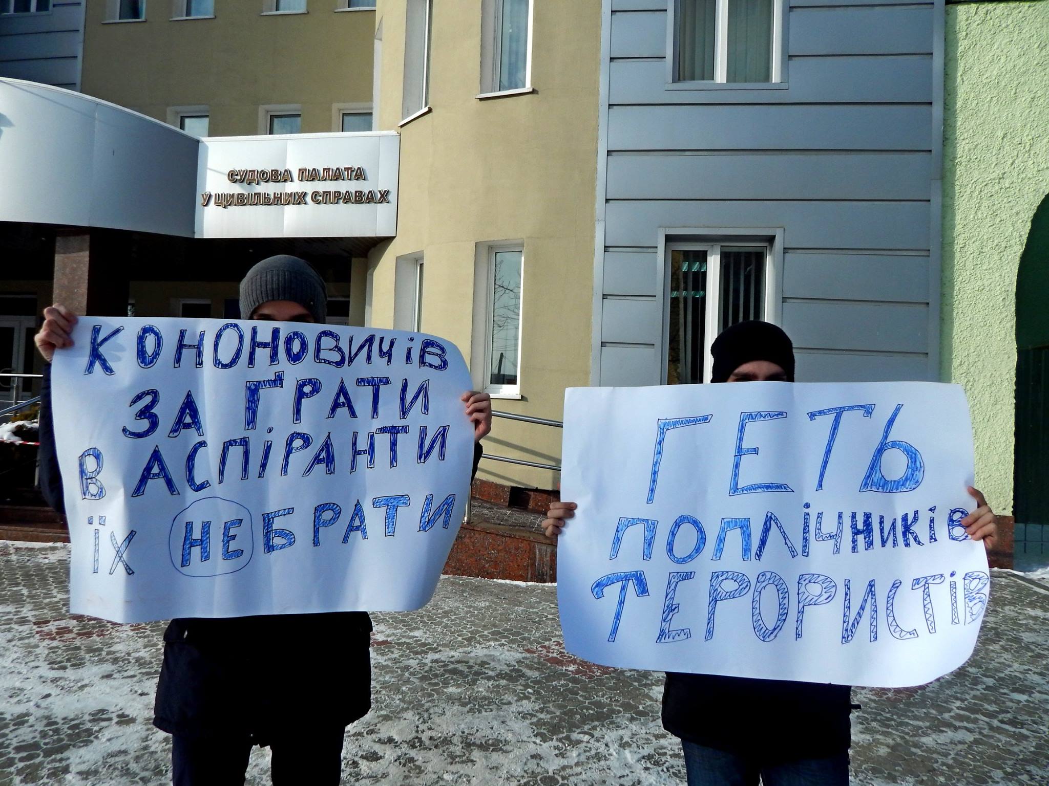 На суд брати Кононовичі не з’явилися, як і на попереднє засідання. Прийшли на розгляд скарги активісти «Національного Альянсу», ЦК «Азову» та «Народного контролю».
