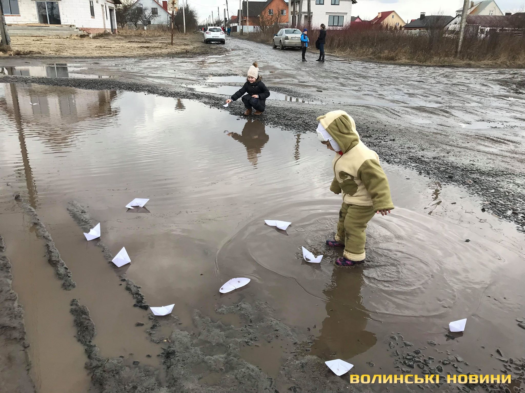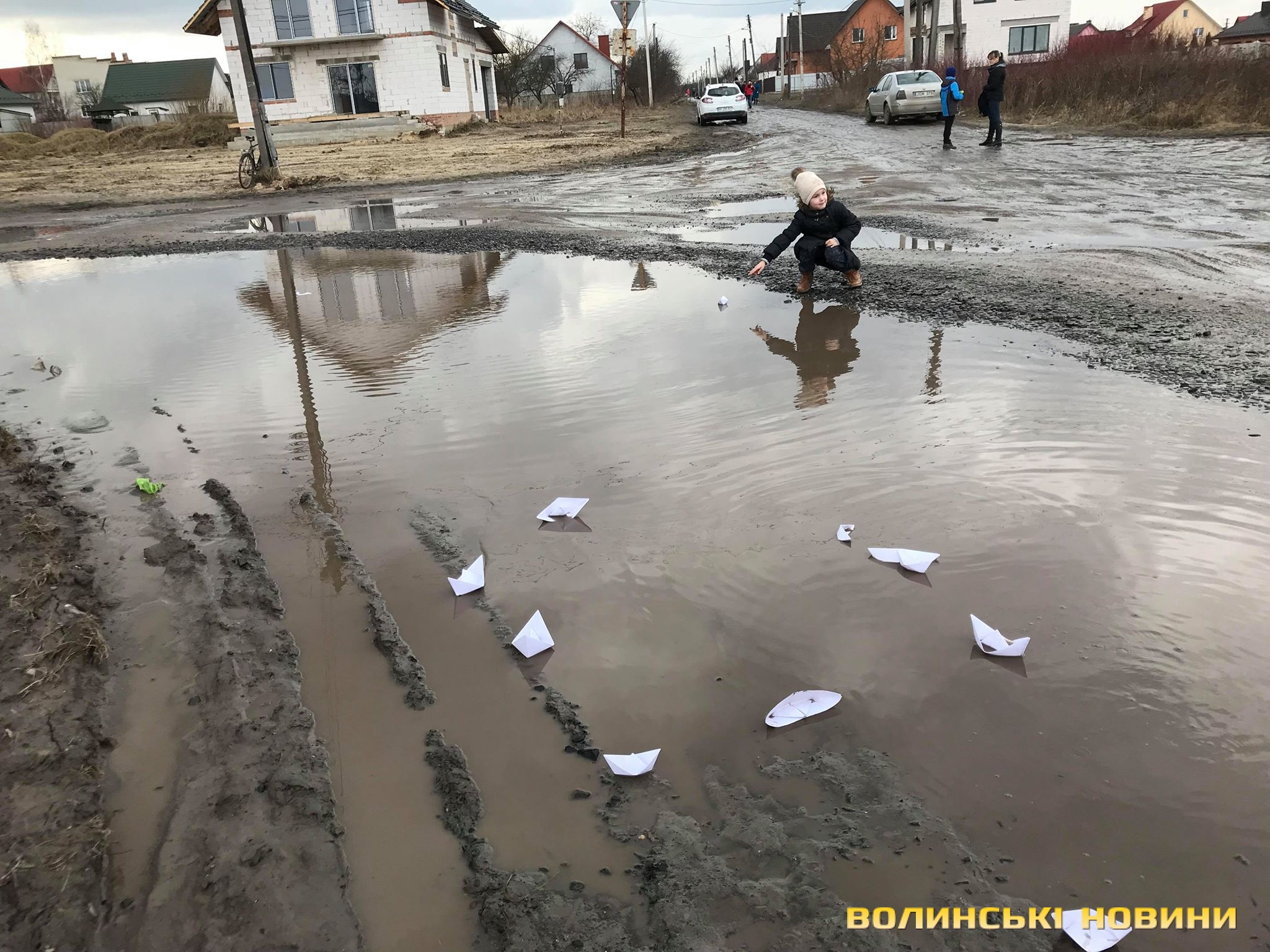 «Кораблик до серця мера»: діти Ковеля, які роками ходять бездоріжжям, провели акцію у «баюрі»