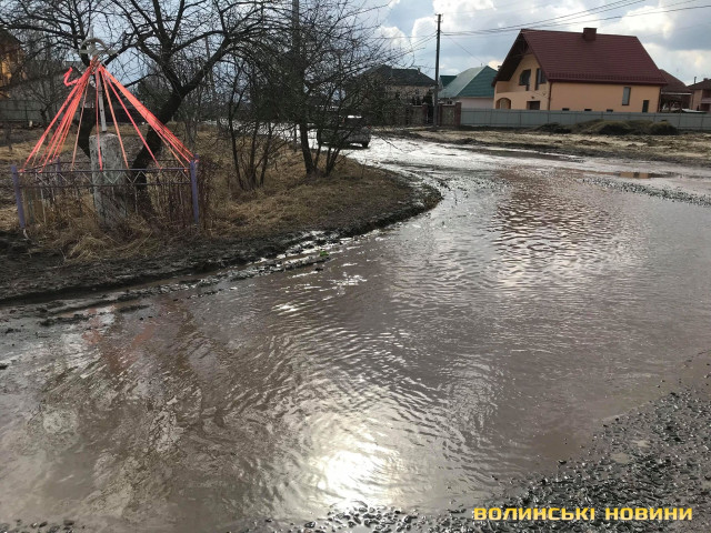 За кількасот метрів від будинку міського голови Ковеля Олега Кіндера люди змушені залишати свої автомобілі на центральній дорозі та у гумових чоботях добиратися до своїх осель, навіть водії автомобілі з підвищеною прохідністю не наважуються заїжджати на закінчення вулиці Відродження.