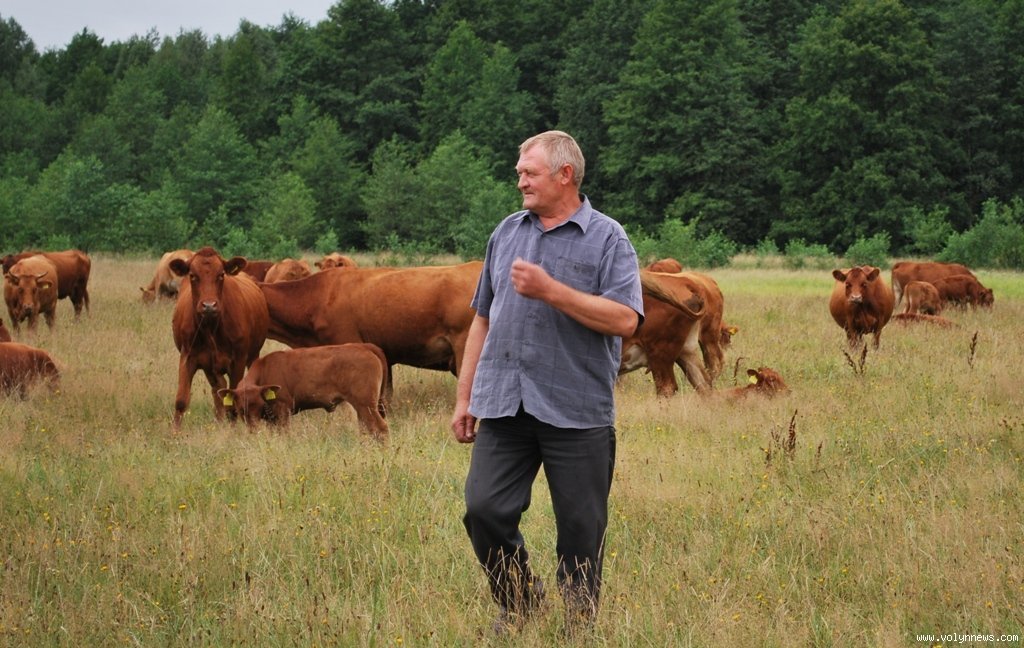 На підприємстві вирощують дві породи корів – волинську м’ясну і абердин-ангуську. Степан Миронюк, який демонстрував випас стада волинської м’ясної, каже, що ця порода ведеться краще, ніж ангуська.