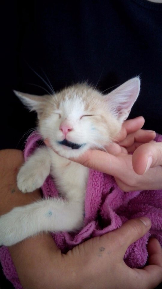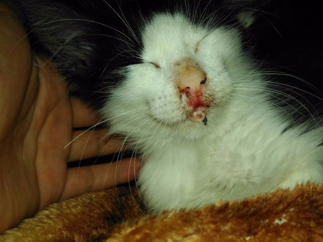 Інше ж кошеня також знайшли, проте йому пощастило ще менше, оскільки у нього не має нижньої губи.