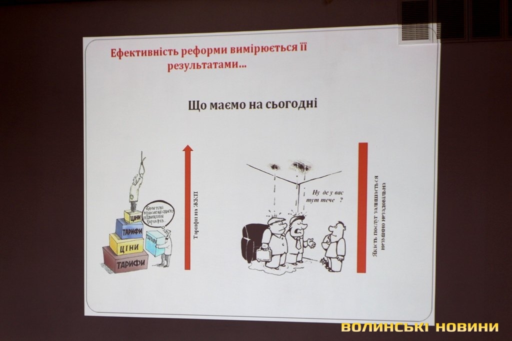 Учасники заходу наголосили, що зміни - необхідні, адже ціни на комунальні послуги збільшуються, а якість - ні. Підрахував скільки коштів сплачують в місяць з одного будинку депутат Луцької міської ради Олександр Плісецький.