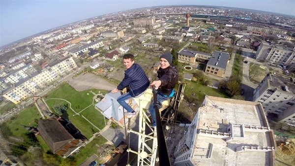 От якби це було, припустимо, у москві і ще б хлопці повісили наш стяг, то всі би кричали/писали що вони герої - чи не так? Ну лазять собі хлопаки, то нехай, аби людям шкоду не робили.