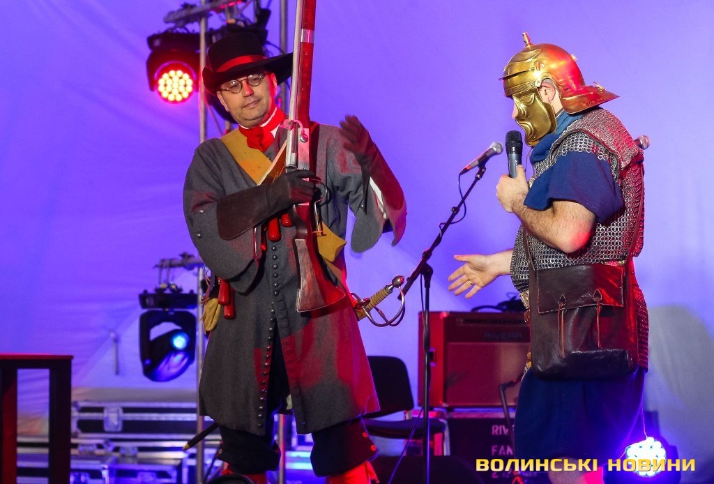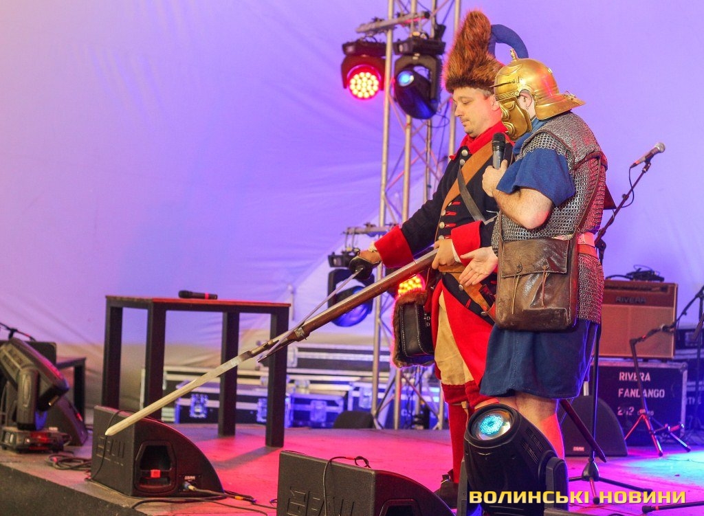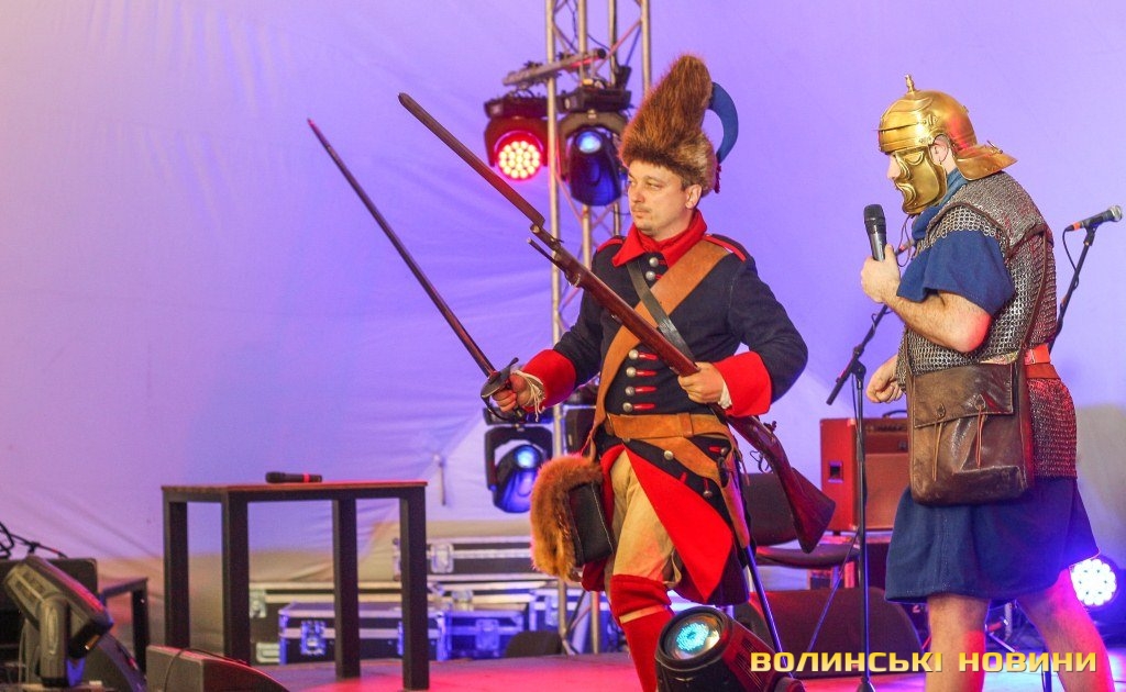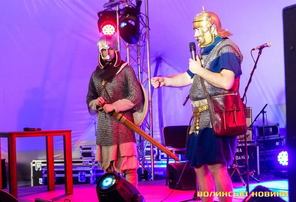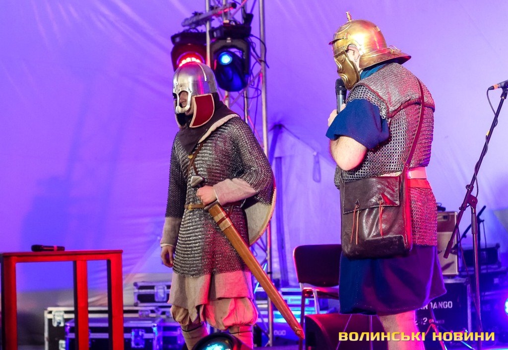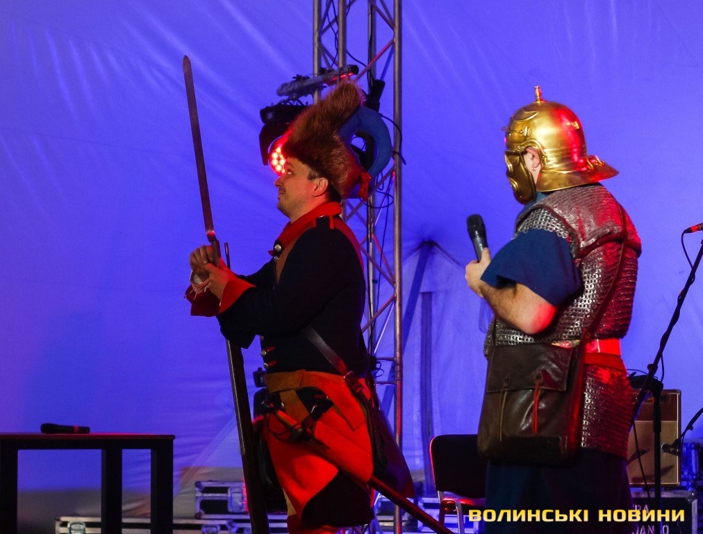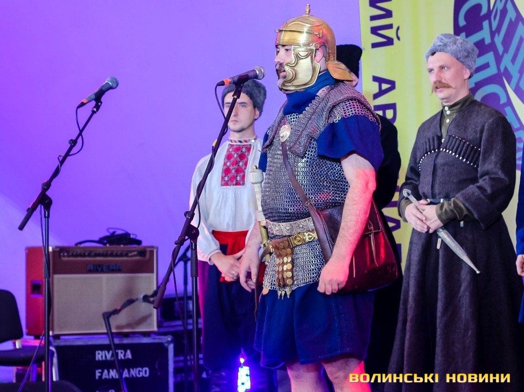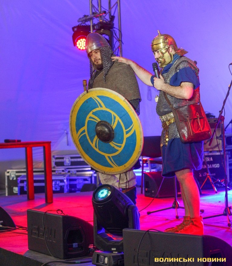 Реконструктори демонстрували спорядження вояків різних історичних періодів. Так, показали давньоруського вояка 9-го століття (реконструкція на базі знахідок). Подібним міг бути і варязький найманець – він мав кольчугу, шолом, щит, озброєний мечем. Вбраний він в один із варіантів «шароварів», описаних арабськими письменниками (зокрема Ібн-Русте). Це фактично не шаровари, а інакші за кроєм штани з великої кількості тканини. На одну штанину мало йти до 50 ліктів тканини, тобто таку кількість міг дозволити собі тогочасний «мультимільйонер», який не жалів грошей. Штани збиралися на поясі та защипалися під коліном. Інша цікава деталь – захист обличчя, відтворений на прикладі експоната Національного музею історії України. Такий варіант вважають найбільш реалістичним.