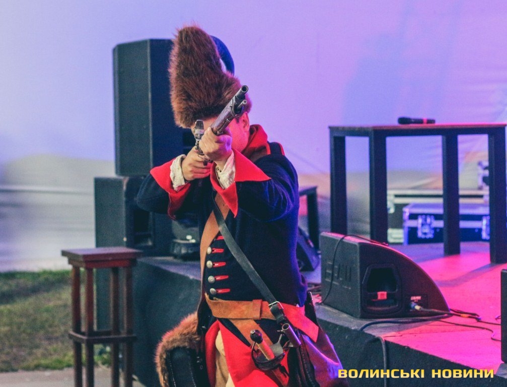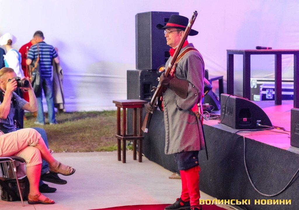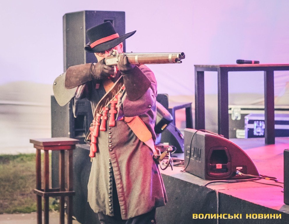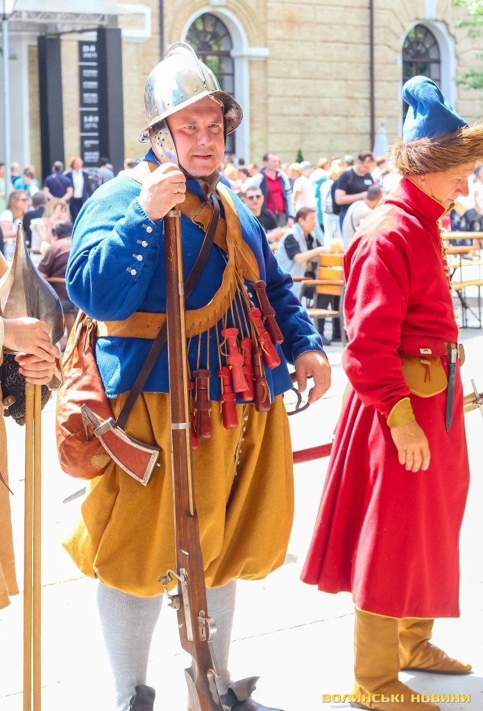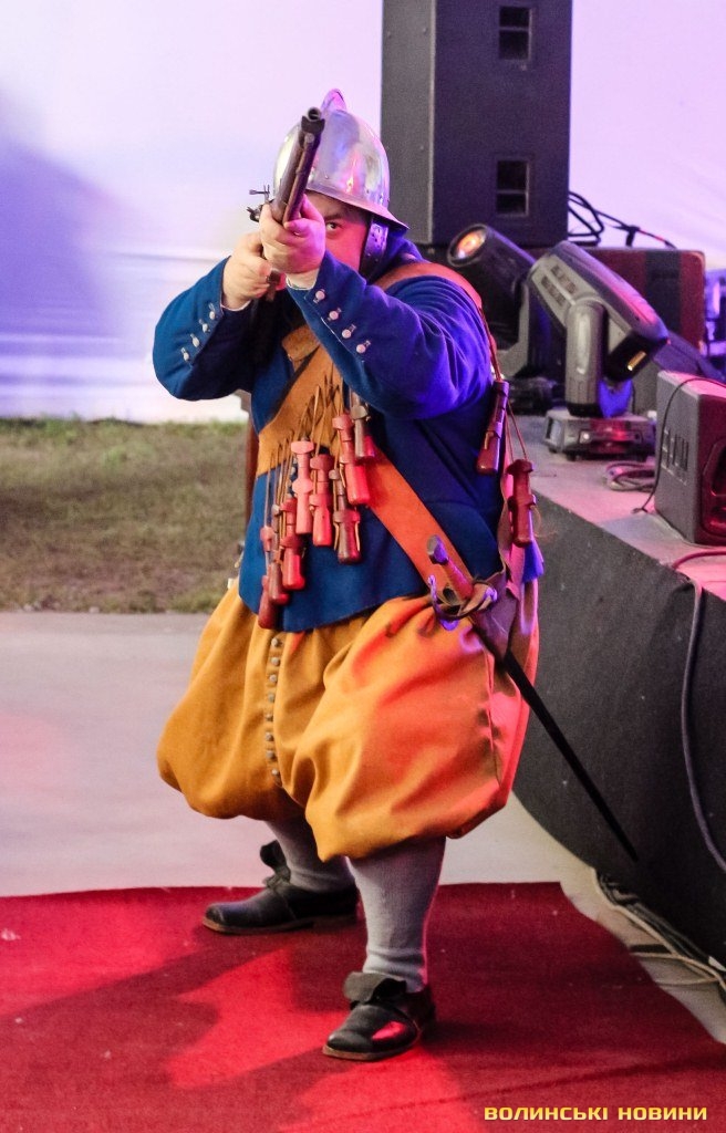 Наступним виступив мушкетер іноземного автораменту Речі Посполитої 1620-30-их років з гарнізонів, які на теренах України стояли залогами у фортецях. Він озброєний гнотним мушкетом та шпагою. Ладунки, в яких зберігається порох, розташовані на грудях, додаткові – на спині. Особисті речі такий вояк носив у саку – шкіряному мішку. Його голову захищає залізний кований шолом, вояк носив жовті штани.