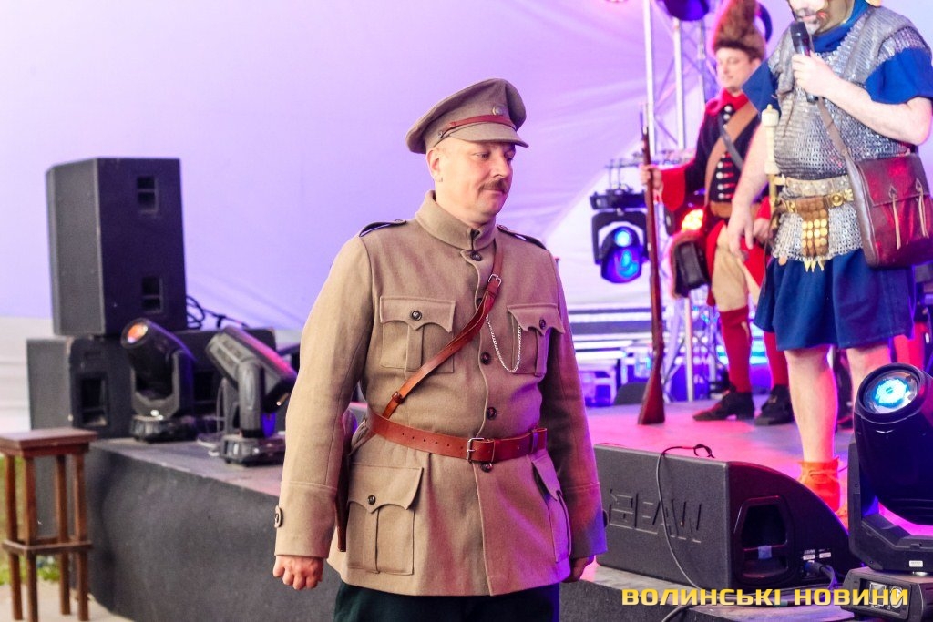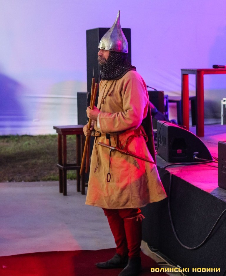 Військовий слуга Великого князівства Литовського (держави, до складу якої входили землі України, зокрема й Волині) зразка 15-го століття непогано споряджений: він захищається дерев’яним щитом, має на голові шолом з кольчужною барницею та два метальні дротики, що звалися ощепами. Також він має кортик. Це – спішений вершник, адже всі війська Великого князівства Литовського були кавалеристами.