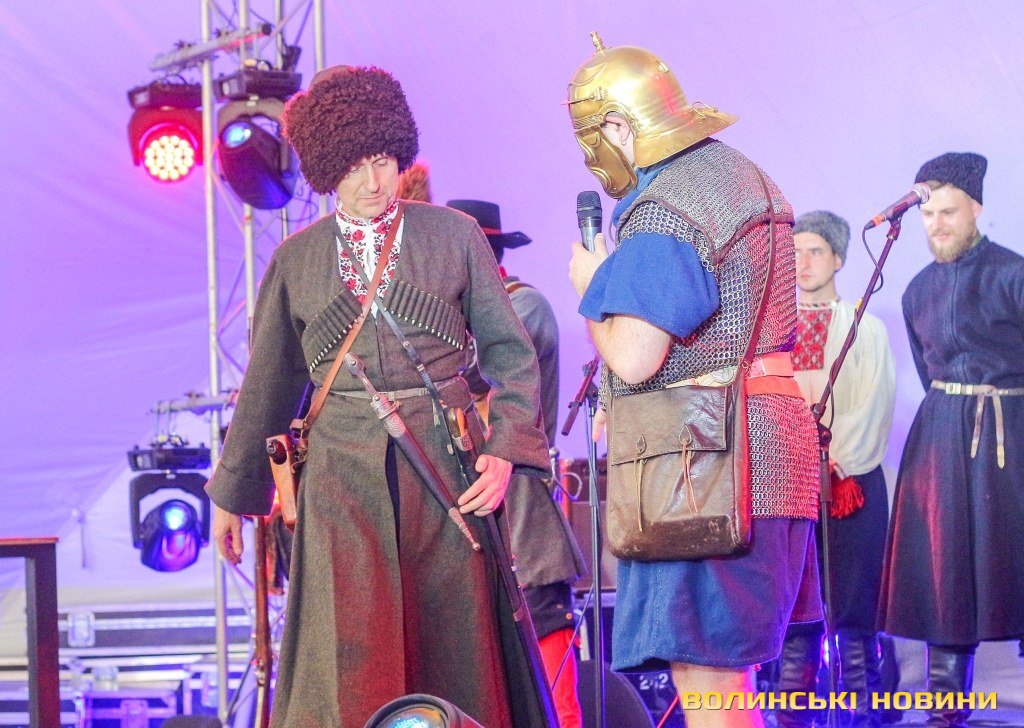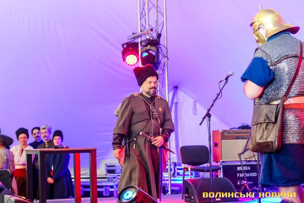 Як наголосив Сергій Шаменков – це високий науковий рівень ретельного відтворення одягу, що відрізняється від фестивальних костюмів, завдяки яким люди хочуть відчути себе в тій чи іншій епосі. Тканина на той час була дуже дорогою, тож кожен клаптик йшов у діло навіть у королівських речах – пола вбрання козака доштукована вручну лляними та шовковими нитками. Козак вбраний у широкі штани.