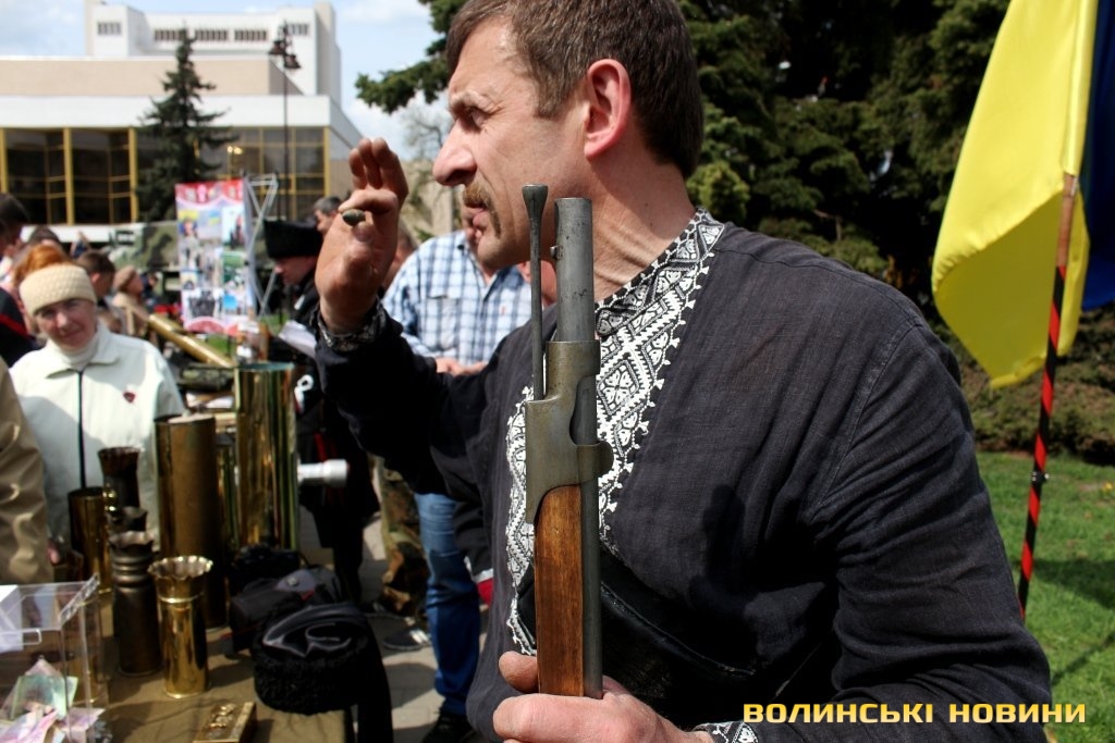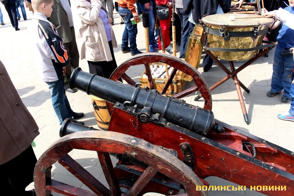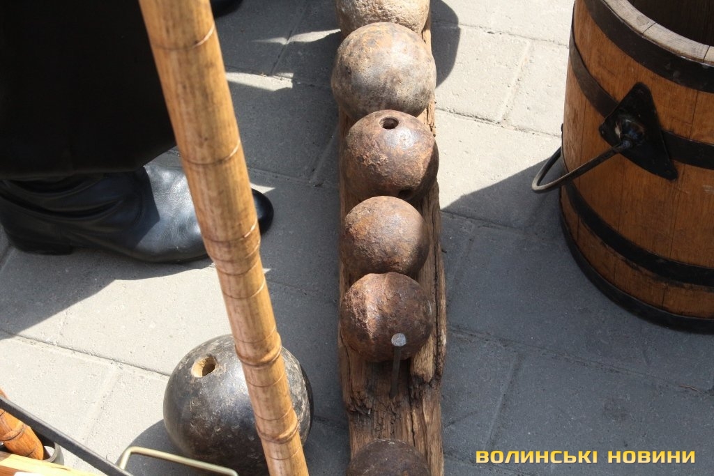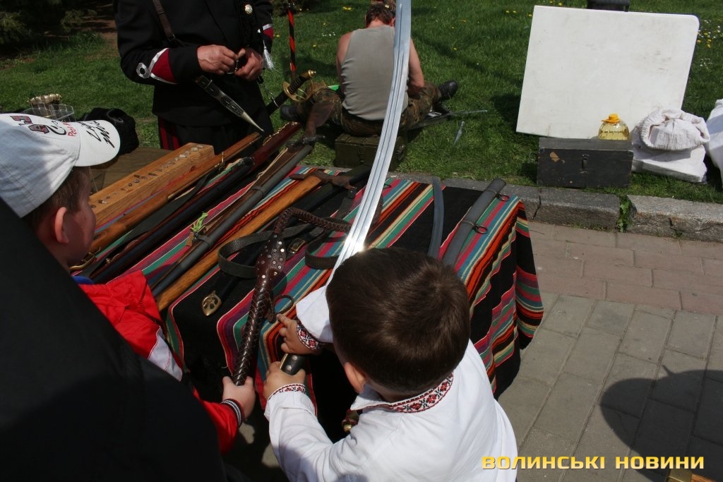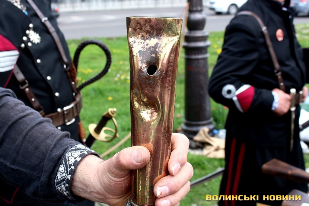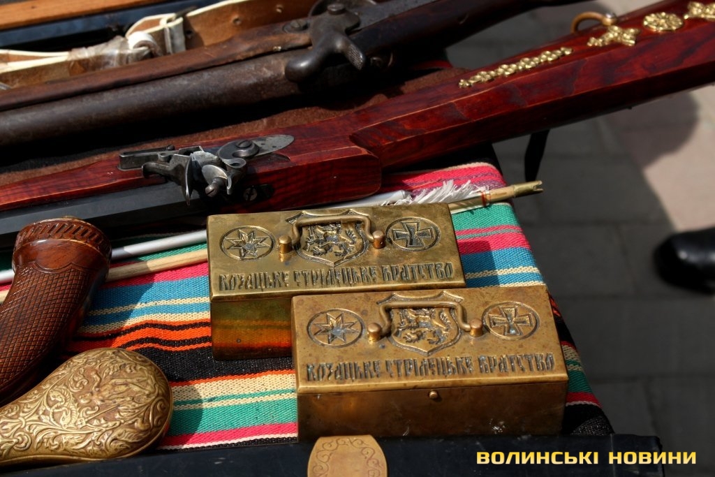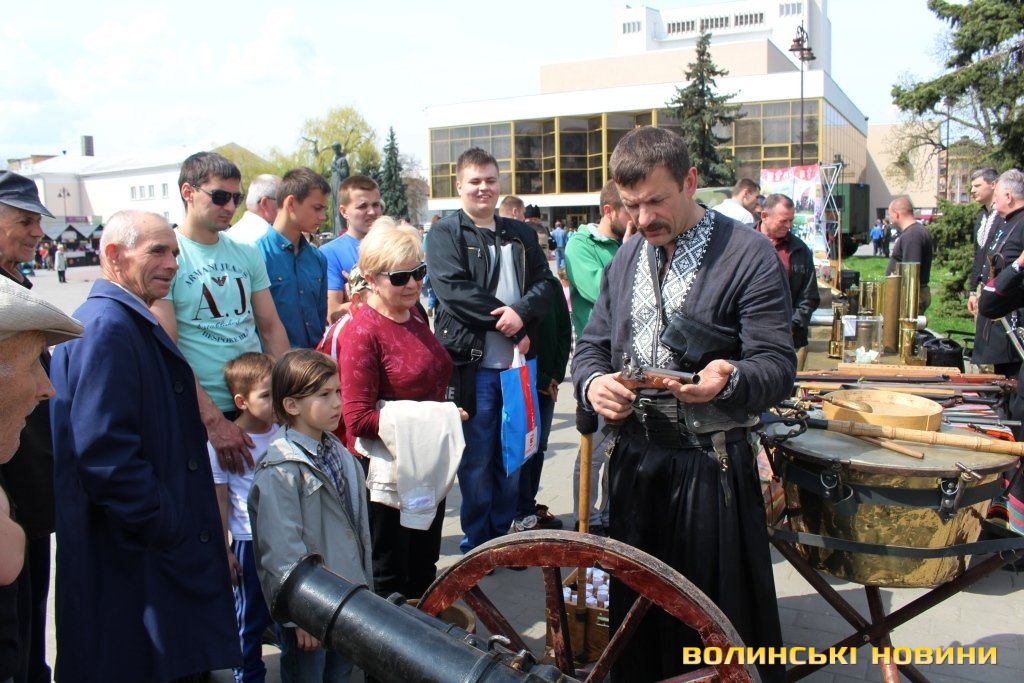 Показ давньої зброї, засобів, які використовувалися під час протистояння на Майдані, та приготування козацьких страв просто неба організували на Театральному майдані у Луцьку.