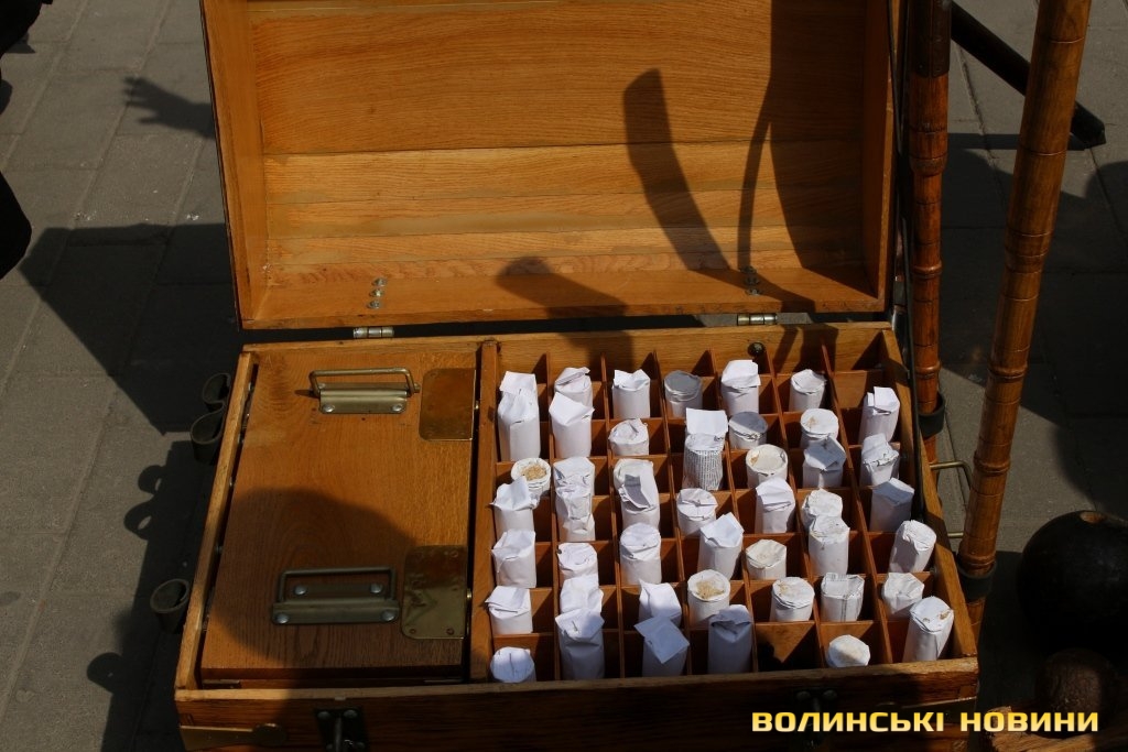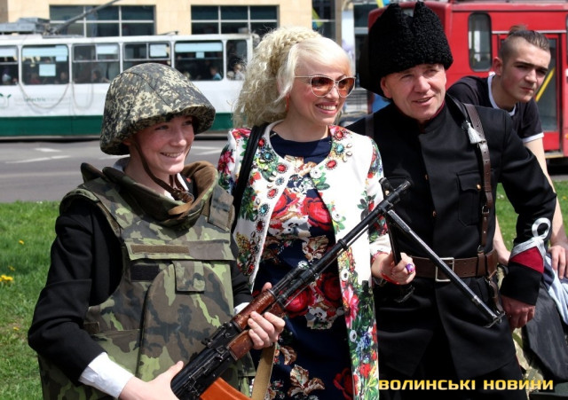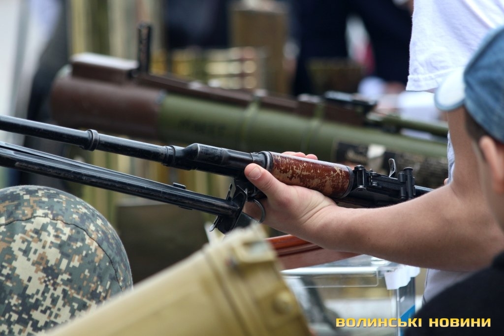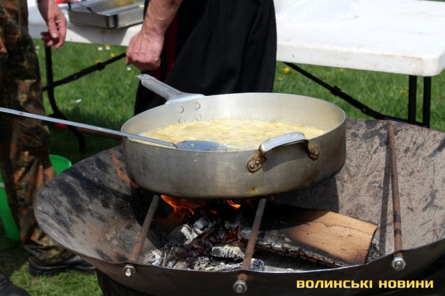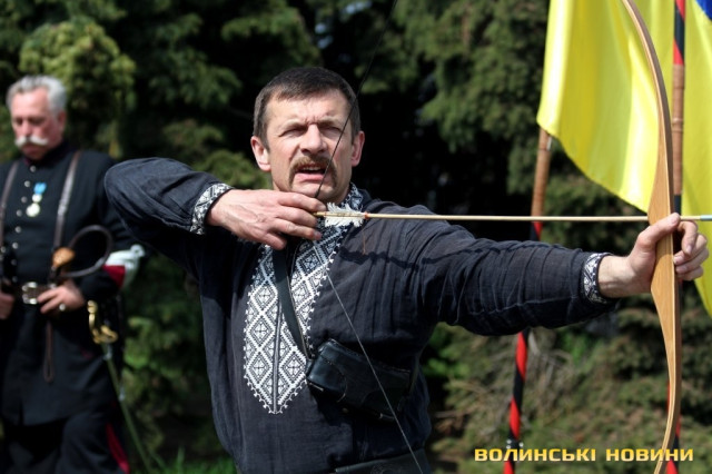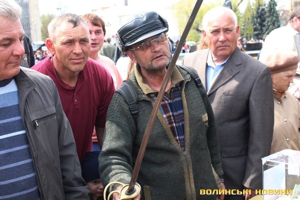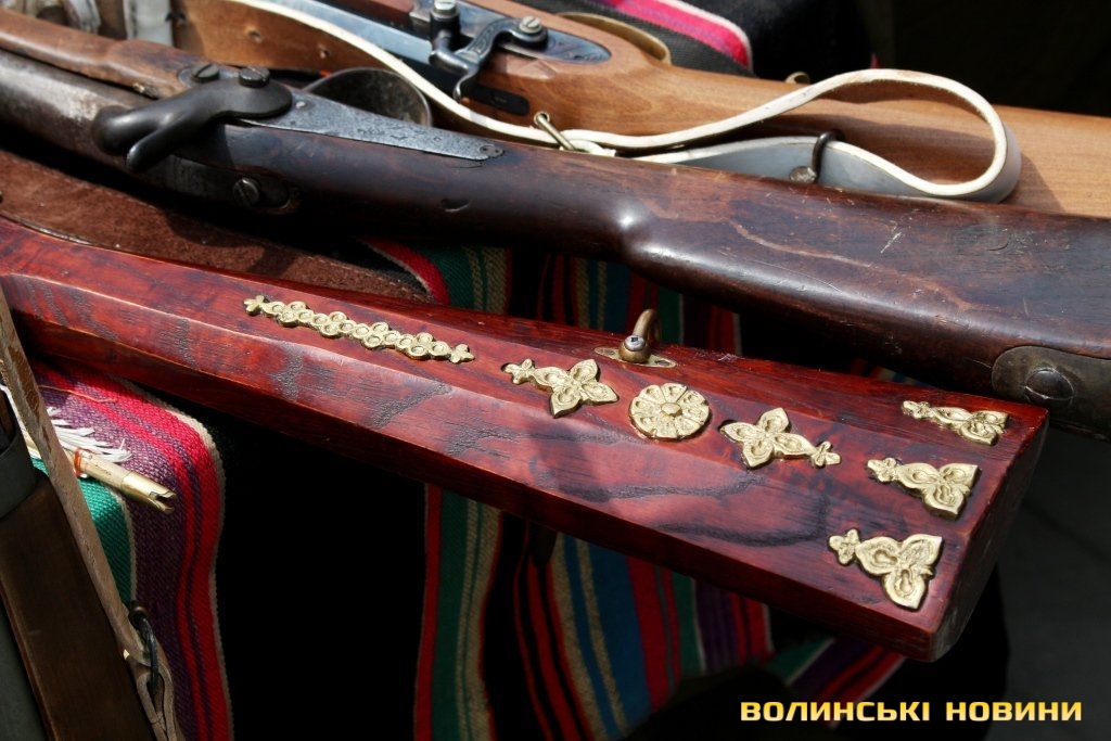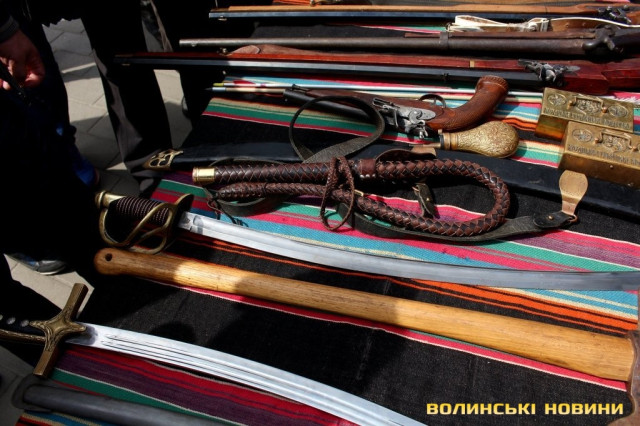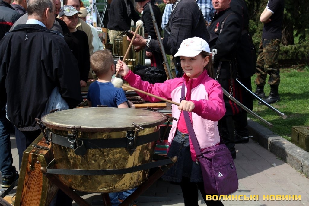 Показ давньої зброї, засобів, які використовувалися під час протистояння на Майдані, та приготування козацьких страв просто неба організували на Театральному майдані у Луцьку.