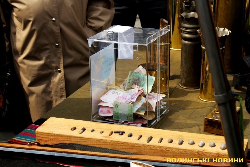 Зброя часів козаччини, вироби з гільз бойових снарядів, згадки про бої на Майдані та збір коштів для українських вояків: козаки з Волинського козацького стрілецького братства долучилися до благодійного марафону на підтримку волинських бійців.