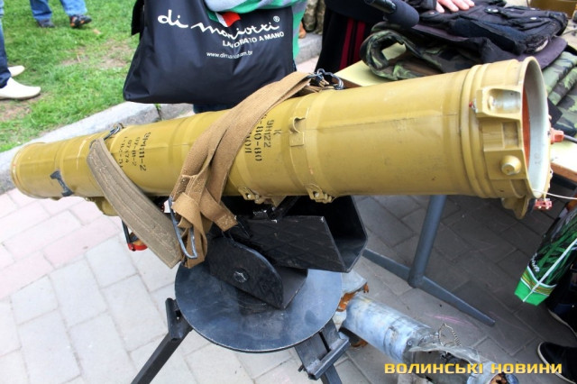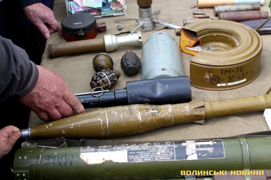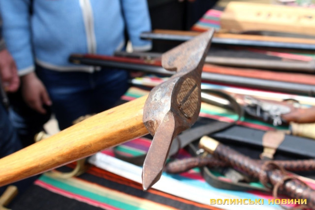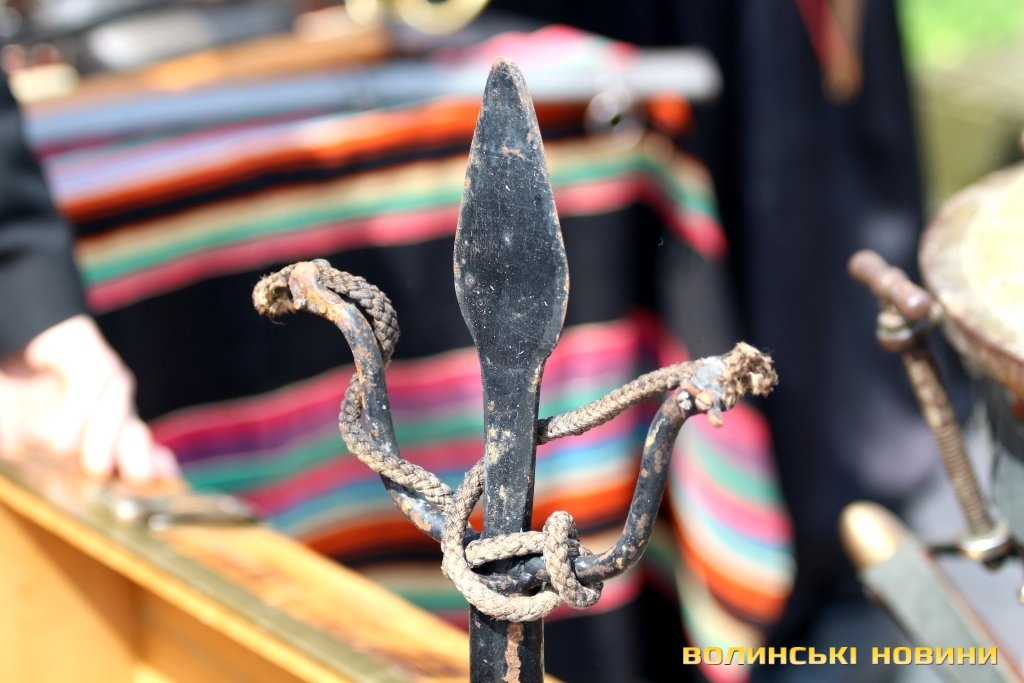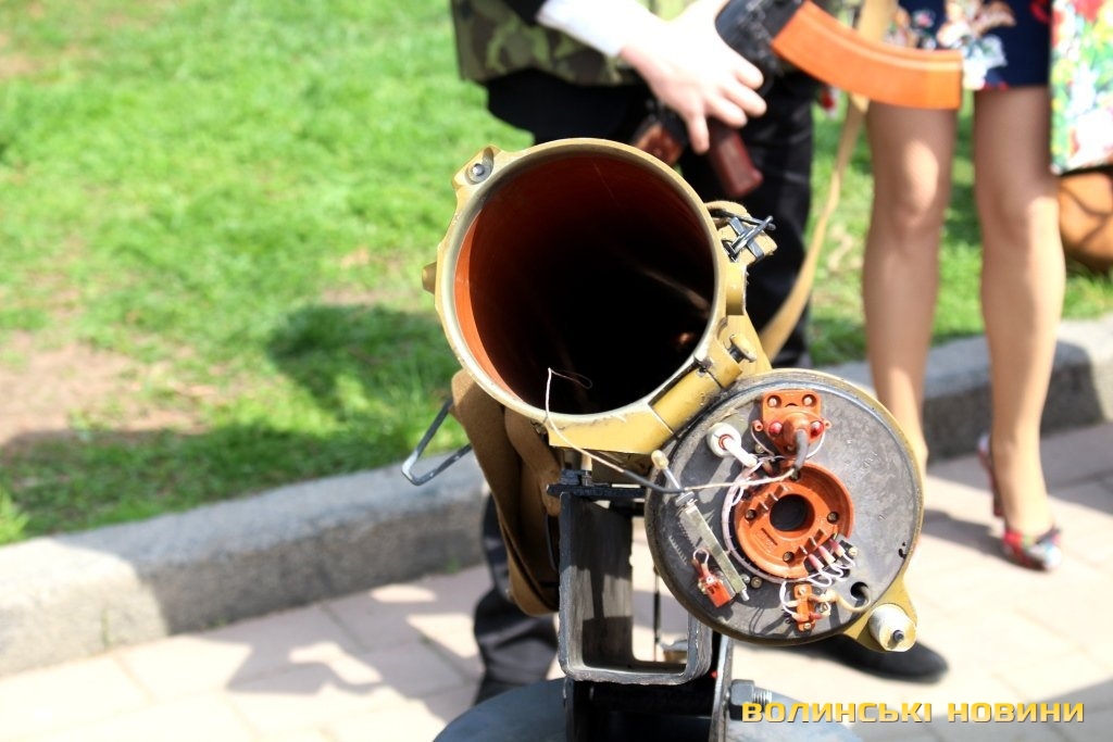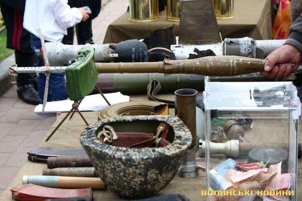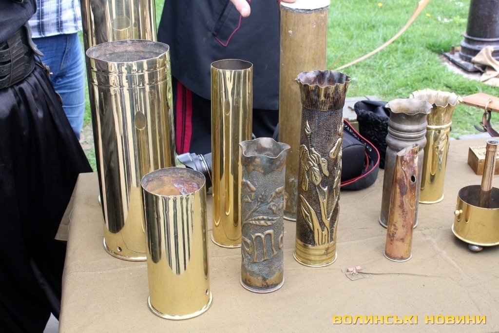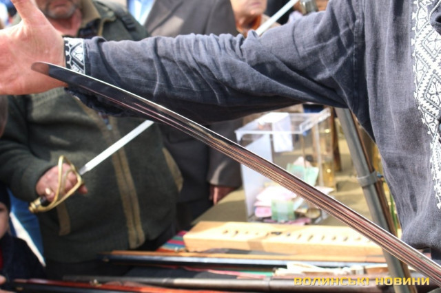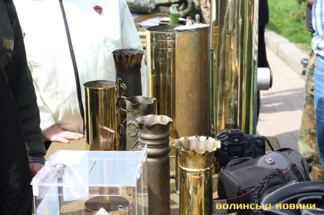 Шаблі, які міг взяти у руки кожен охочий, попри те, що слугували небезпечною зброєю, важать трохи більше одного кілограма. Демонстрували також вироби зі справжніх гільз снарядів: підсвічники, коптилки часів Другої світової війни (світильник, що використовувався в землянках) та вази. Можна було побачити і зброю, яка використовується нині на сході України, зокрема, гранатомети.