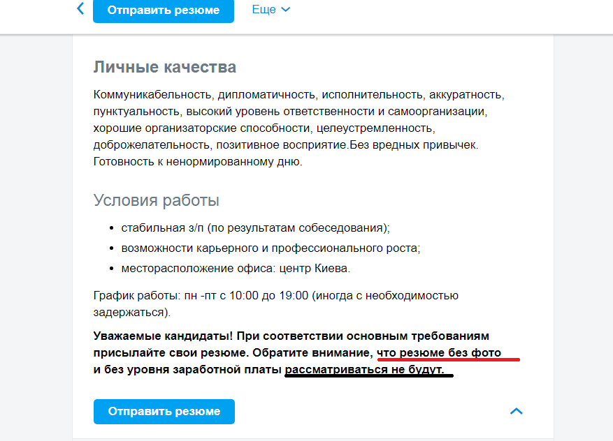 “Вимагати фото в резюме – це дискримінація, немає значення зовнішність, мають значення лише професійні навички для виконання роботи. Якщо