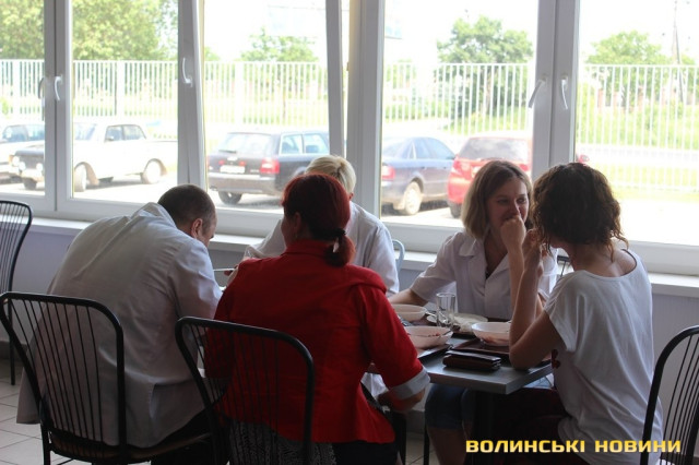 До слова, на території закладу працює їдальня. Тут працівники мають змогу не тільки замовити комплексні обіди, вартість яких складає 11,90 гривні, але й розігріти їжу, принесену з дому.Щоправда, зовсім не в захваті від таких правил курці. Мовляв, приходиться перебиватись без звичних «перекурів».Батіг, пряник, чи те й інше?