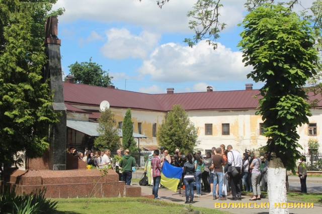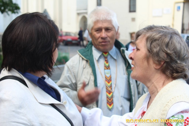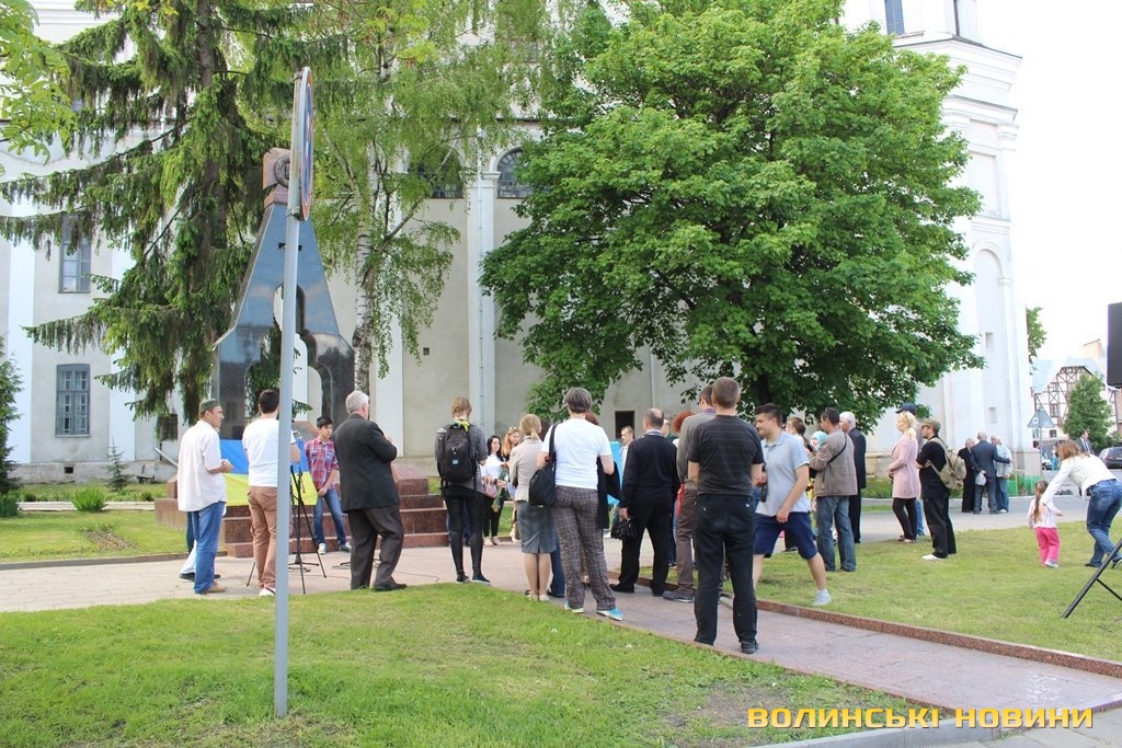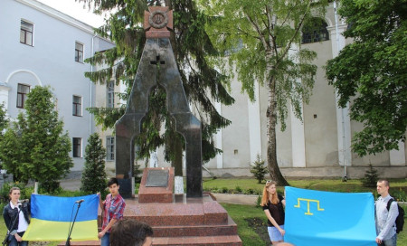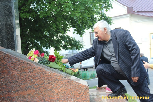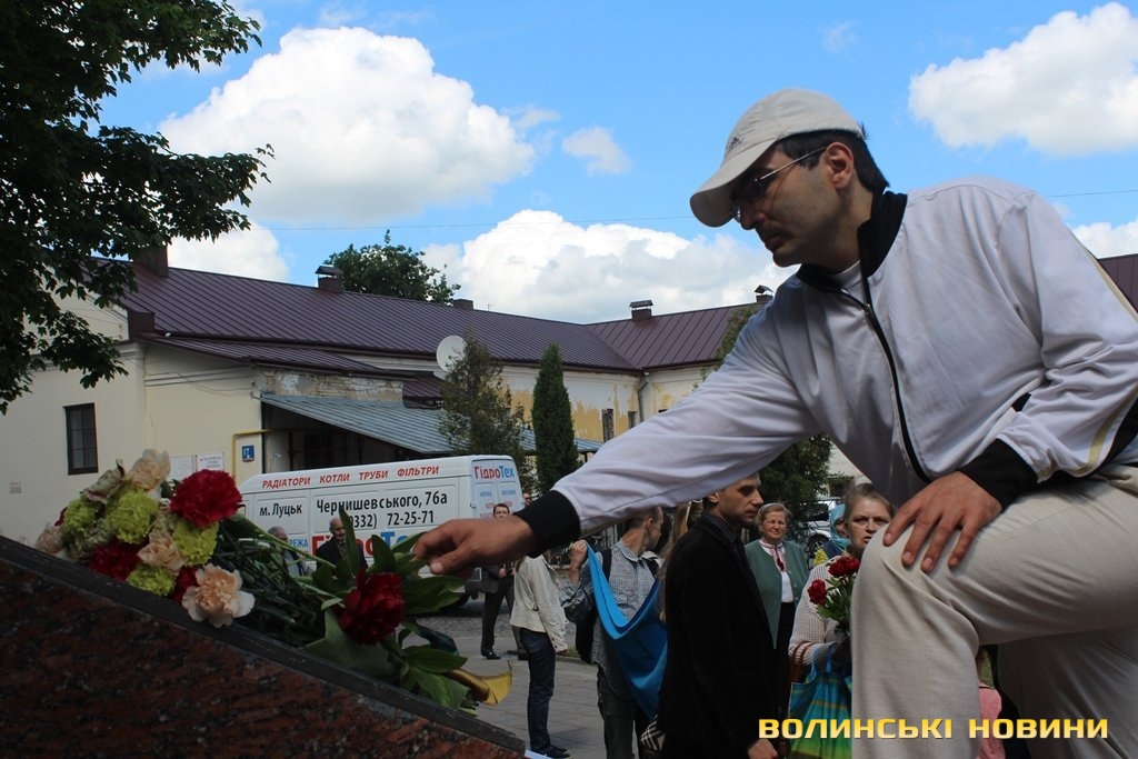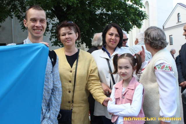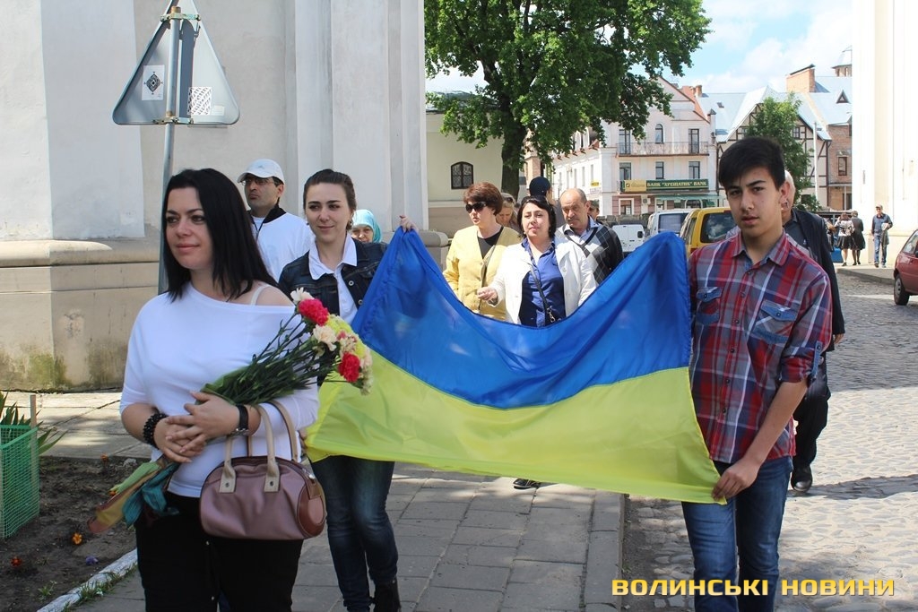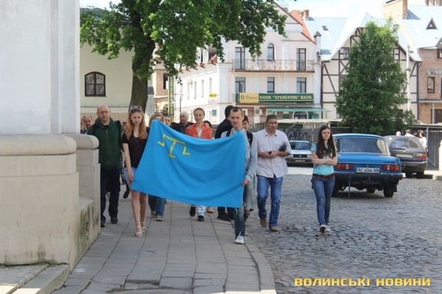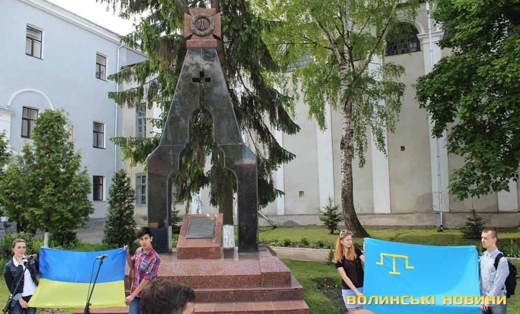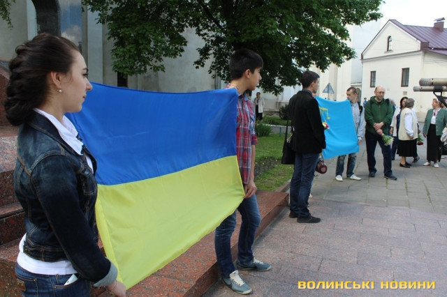 Захід у Луцьку розпочався з хвилини мовчання. Коли йшли до пам’ятного знаку, то кримські татари несли український прапор, а лучани - їхній, аби показати, що ми – єдиний народ.