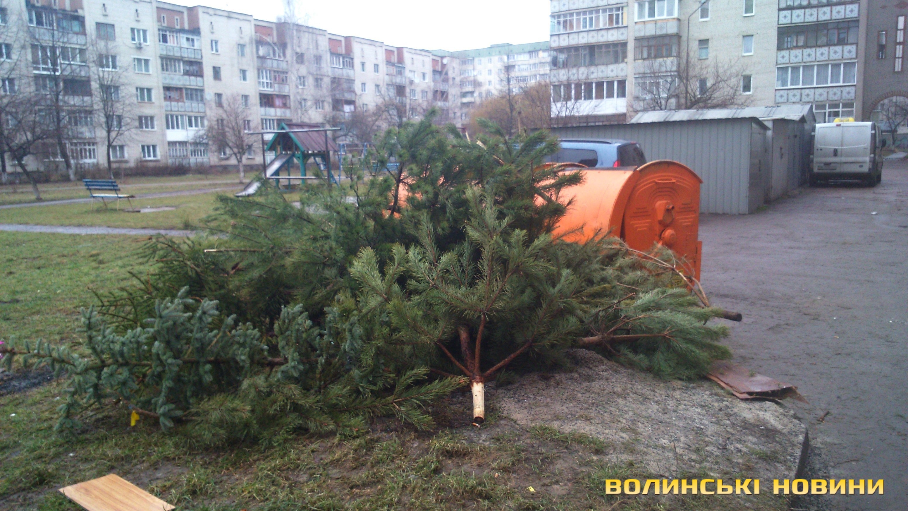 Однак, під приціл фотоапаратів Інформаційного агентства Волинські Новини потрапили й інші картини. Менш відповідальні краяни викидають дерева навіть не в смітники, а поряд з ними.