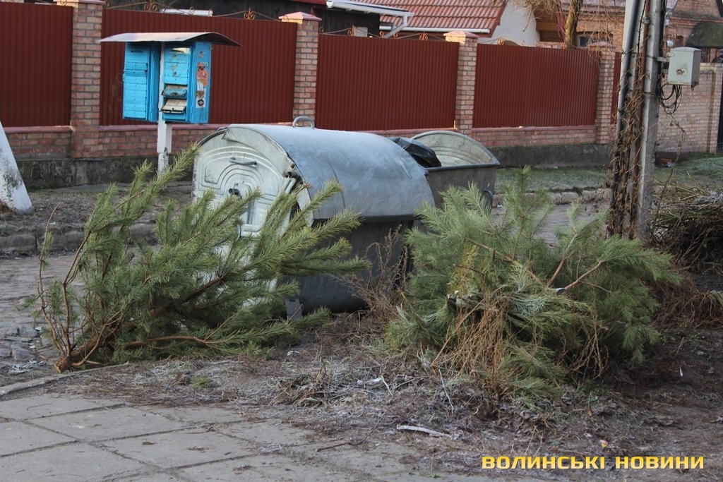 Такий розумник ти бачу! "Викидають дерева НАВІТЬ не в смітники, а кладуть біля". Якщо один чи максимум двоє втиснуть свою ялинку в бак, то побутове сміття буде валятись горами. Навпаки продумані лучани! Досвід, так сказать, бо як працюють комунальні служби всі знають
